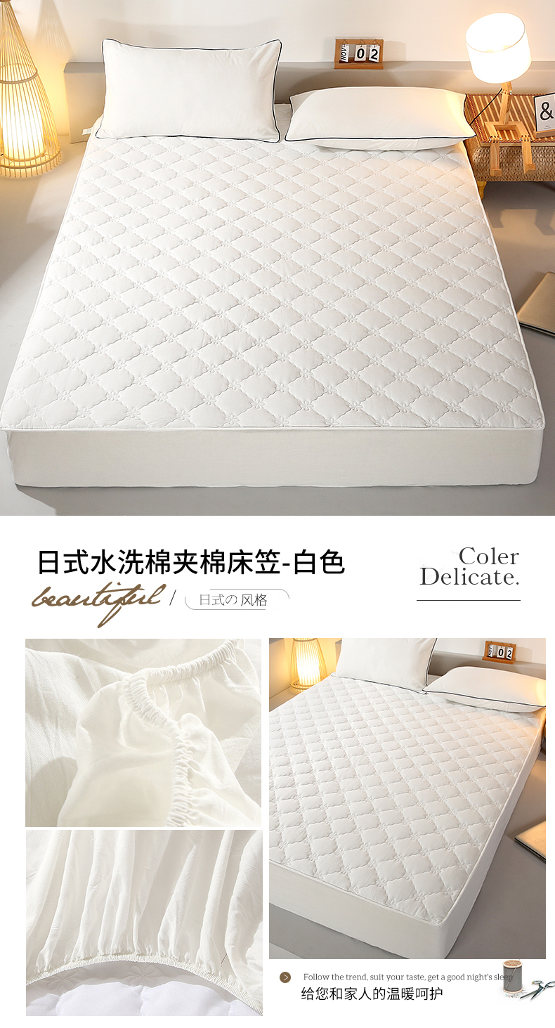• 91家纺网 家纺一手货源 找家纺 乐逸家纺 2026新款日式100%全棉色织水洗棉夹棉床笠 日式水洗棉夹棉床笠-白色