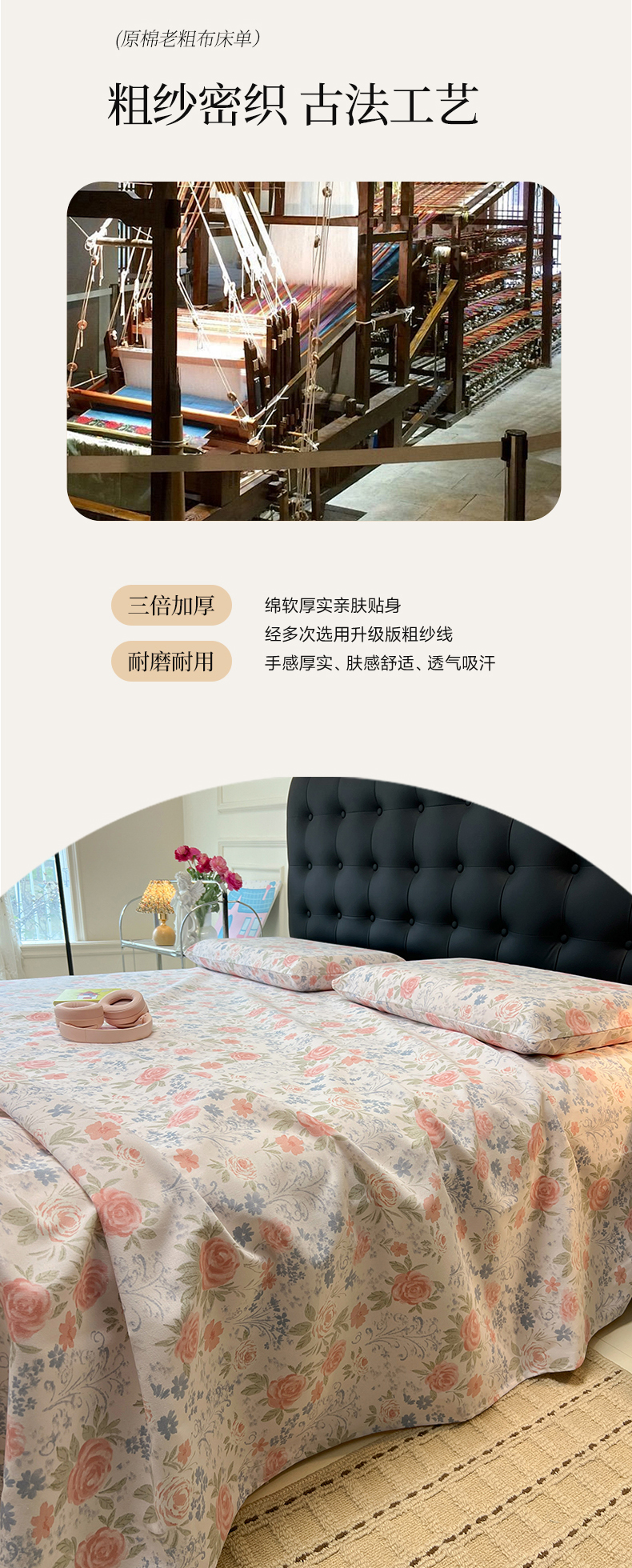 当前位置: 91家纺网 > 商品网购 > 床上用品 > 床单 > 韩巢家纺 2026新款老粗布床单凉席席子床单单件 蔷薇甜梦【老粗布】