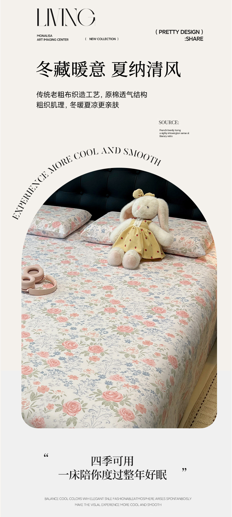 • 91家纺网 家纺一手货源 找家纺 韩巢家纺 2026新款老粗布床单凉席席子床单单件 蔷薇甜梦【老粗布】