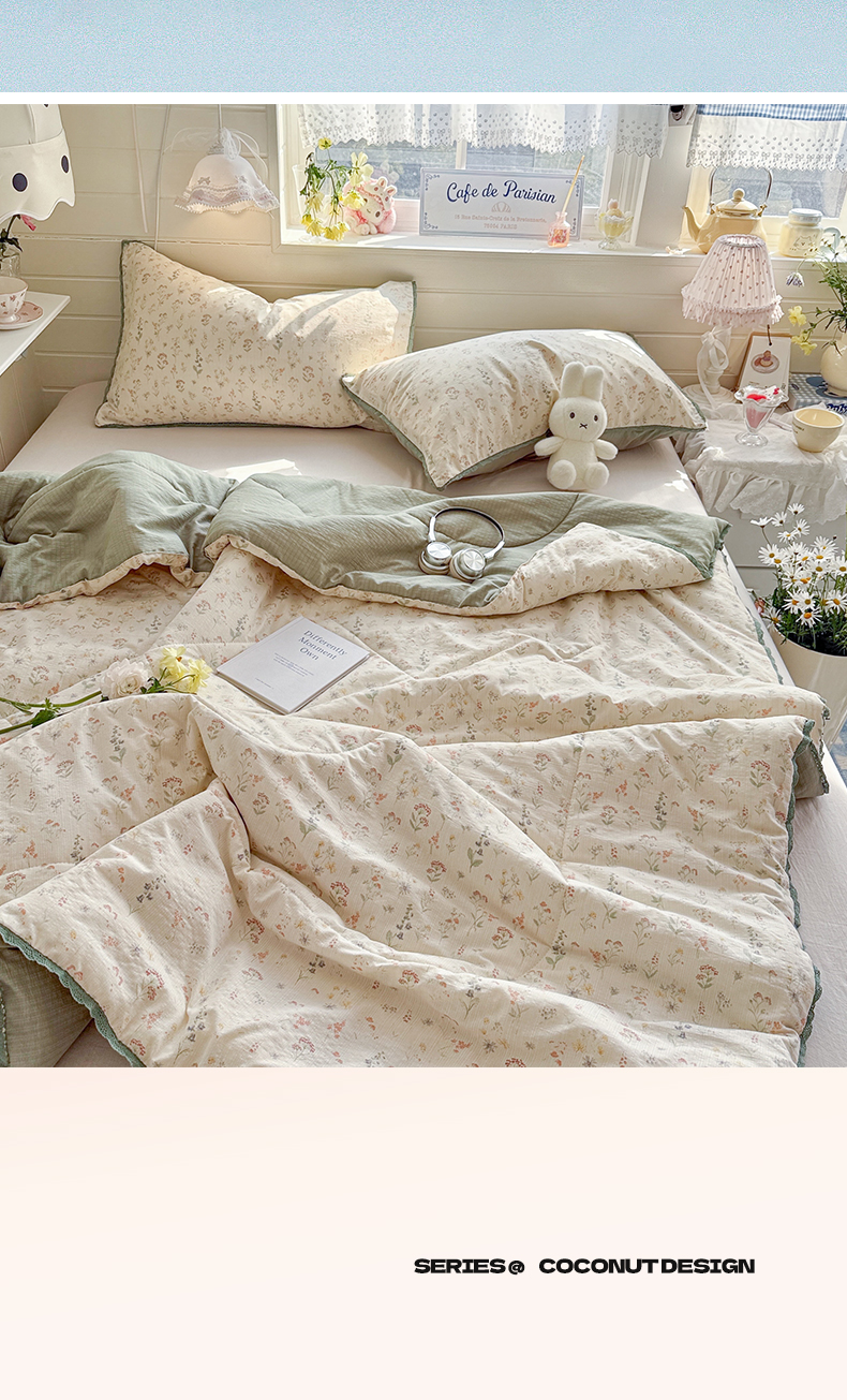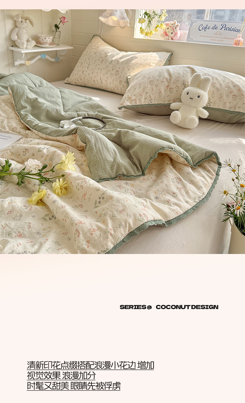 优承佳生活馆 2026新款云感双层纱抗菌夏被夏凉被空调被 浅草花语