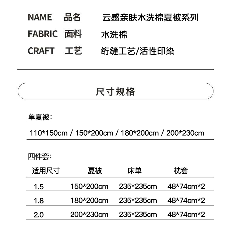 [{"sp_id":1,"sp_name":"\u989c\u8272","sp_format":2,"sp_list":[{"sp_value_id":661,"sp_value_name":"\u7a7a\u8c03\u88ab\u6c6a\u661f\u4eba","sp_value_image":{"id":999,"path":"https:\/\/img3.91jf.com\/ghelp\/2026\/20260327\/20260327180828_664087.jpeg"},"sp_value_video":{"id":0,"img":"","path":"","time":0,"download_num":0,"play_num":0},"price":"14.00","storage":6500,"weight":"1.800","is_check_weight":0,"plus_price":"","sp_sort":19}]},{"sp_id":27,"sp_name":"\u5c3a\u5bf8","sp_format":1,"sp_list":[{"sp_value_id":302,"sp_value_name":"110x150cm\u5355\u590f\u88ab","sp_value_image":{"id":0,"path":""},"sp_value_video":{"id":0,"img":"","path":"","time":0,"download_num":0,"play_num":0},"price":"14.00","storage":0,"weight":"1.800","is_check_weight":0,"plus_price":"","sp_sort":5},{"sp_value_id":303,"sp_value_name":"150x200cm\u5355\u590f\u88ab","sp_value_image":{"id":0,"path":""},"sp_value_video":{"id":0,"img":"","path":"","time":0,"download_num":0,"play_num":0},"price":"26.00","storage":500,"weight":"1.000","is_check_weight":0,"plus_price":"","sp_sort":6},{"sp_value_id":304,"sp_value_name":"180x220cm\u5355\u590f\u88ab","sp_value_image":{"id":0,"path":""},"sp_value_video":{"id":0,"img":"","path":"","time":0,"download_num":0,"play_num":0},"price":"29.00","storage":500,"weight":"1.100","is_check_weight":0,"plus_price":"","sp_sort":7},{"sp_value_id":305,"sp_value_name":"200x230cm\u5355\u590f\u88ab","sp_value_image":{"id":0,"path":""},"sp_value_video":{"id":0,"img":"","path":"","time":0,"download_num":0,"play_num":0},"price":"32.00","storage":500,"weight":"1.200","is_check_weight":0,"plus_price":"","sp_sort":8},{"sp_value_id":306,"sp_value_name":"150x200cm\u5355\u590f\u88ab+\u6795\u5957\u4e00\u5bf9","sp_value_image":{"id":0,"path":""},"sp_value_video":{"id":0,"img":"","path":"","time":0,"download_num":0,"play_num":0},"price":"43.00","storage":500,"weight":"1.400","is_check_weight":0,"plus_price":"","sp_sort":9},{"sp_value_id":307,"sp_value_name":"180x220cm\u5355\u590f\u88ab+\u6795\u5957\u4e00\u5bf9","sp_value_image":{"id":0,"path":""},"sp_value_video":{"id":0,"img":"","path":"","time":0,"download_num":0,"play_num":0},"price":"48.00","storage":500,"weight":"1.500","is_check_weight":0,"plus_price":"","sp_sort":10},{"sp_value_id":308,"sp_value_name":"200x230cm\u5355\u590f\u88ab+\u6795\u5957\u4e00\u5bf9","sp_value_image":{"id":0,"path":""},"sp_value_video":{"id":0,"img":"","path":"","time":0,"download_num":0,"play_num":0},"price":"50.00","storage":500,"weight":"1.600","is_check_weight":0,"plus_price":"","sp_sort":11},{"sp_value_id":309,"sp_value_name":"150x200cm\u5355\u590f\u88ab+\u5e8a\u5355+\u6795\u5957\u4e00\u5bf9","sp_value_image":{"id":0,"path":""},"sp_value_video":{"id":0,"img":"","path":"","time":0,"download_num":0,"play_num":0},"price":"54.00","storage":500,"weight":"2.400","is_check_weight":0,"plus_price":"","sp_sort":12},{"sp_value_id":310,"sp_value_name":"180x220cm\u5355\u590f\u88ab+\u5e8a\u5355+\u6795\u5957\u4e00\u5bf9","sp_value_image":{"id":0,"path":""},"sp_value_video":{"id":0,"img":"","path":"","time":0,"download_num":0,"play_num":0},"price":"56.00","storage":500,"weight":"2.500","is_check_weight":0,"plus_price":"","sp_sort":13},{"sp_value_id":311,"sp_value_name":"200x230cm\u5355\u590f\u88ab+\u5e8a\u5355+\u6795\u5957\u4e00\u5bf9","sp_value_image":{"id":0,"path":""},"sp_value_video":{"id":0,"img":"","path":"","time":0,"download_num":0,"play_num":0},"price":"58.00","storage":500,"weight":"2.600","is_check_weight":0,"plus_price":"","sp_sort":14},{"sp_value_id":312,"sp_value_name":"150x200cm\u5355\u590f\u88ab+1.5\u5e8a\u7b20+\u6795\u5957\u4e00\u5bf9","sp_value_image":{"id":0,"path":""},"sp_value_video":{"id":0,"img":"","path":"","time":0,"download_num":0,"play_num":0},"price":"59.00","storage":500,"weight":"2.500","is_check_weight":0,"plus_price":"","sp_sort":15},{"sp_value_id":313,"sp_value_name":"180x220cm\u5355\u590f\u88ab+1.8\u5e8a\u7b20+\u6795\u5957\u4e00\u5bf9","sp_value_image":{"id":0,"path":""},"sp_value_video":{"id":0,"img":"","path":"","time":0,"download_num":0,"play_num":0},"price":"61.00","storage":500,"weight":"2.600","is_check_weight":0,"plus_price":"","sp_sort":16},{"sp_value_id":314,"sp_value_name":"200x230cm\u5355\u590f\u88ab+1.5\u5e8a\u7b20+\u6795\u5957\u4e00\u5bf9","sp_value_image":{"id":0,"path":""},"sp_value_video":{"id":0,"img":"","path":"","time":0,"download_num":0,"play_num":0},"price":"63.00","storage":500,"weight":"2.700","is_check_weight":0,"plus_price":"","sp_sort":17},{"sp_value_id":315,"sp_value_name":"200x230cm\u5355\u590f\u88ab+1.8\u5e8a\u7b20+\u6795\u5957\u4e00\u5bf9","sp_value_image":{"id":0,"path":""},"sp_value_video":{"id":0,"img":"","path":"","time":0,"download_num":0,"play_num":0},"price":"63.00","storage":500,"weight":"2.700","is_check_weight":0,"plus_price":"","sp_sort":18}]}]
