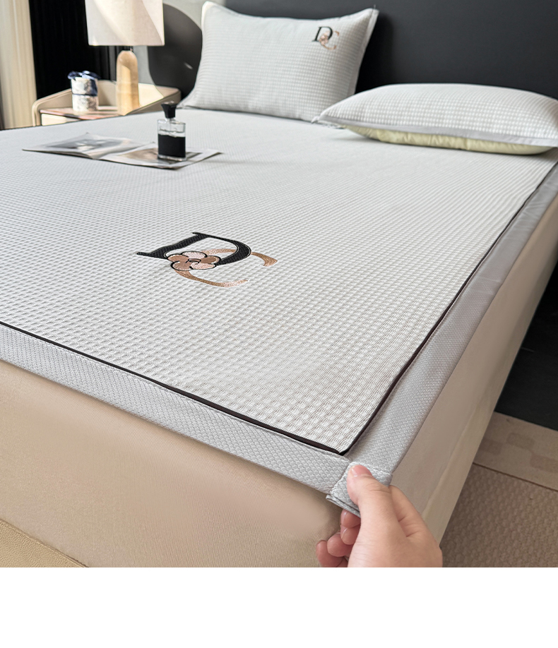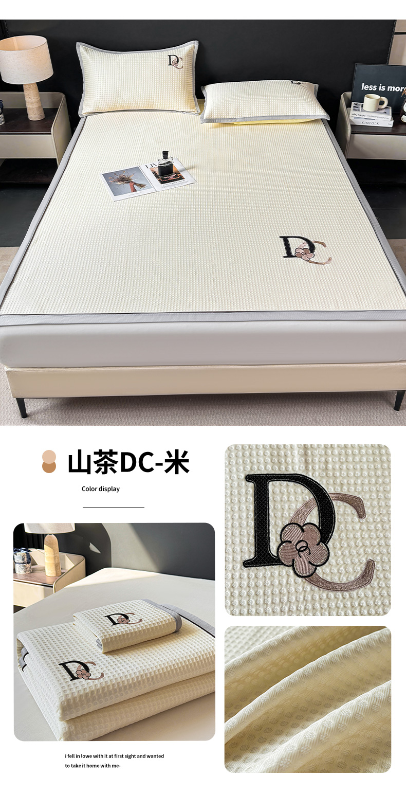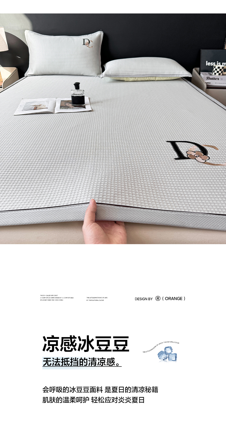 • 91家纺网 家纺一手货源 找家纺 (总)眠势力 2026新款冰豆豆凉席刺绣款凉席子冰感豆豆床单软凉席三件套可机洗,山茶DC-粉,山茶DC-灰,山茶DC-兰,山茶DC-绿,山茶DC-米,雅致-粉,雅致-灰,雅致-兰,雅致-绿,雅致-米