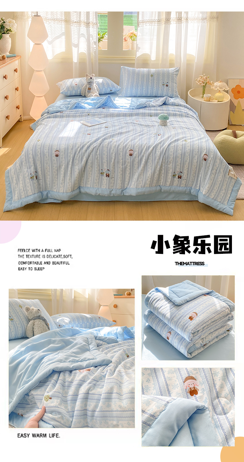 (总)憨豆家纺 2026新款水洗冰丝夏被四件套星球水洗真丝夏凉被(含抗菌棉)跨境外贸床笠款空调被,冰川蓝,冰海灰,冰甜绿,远山蓝