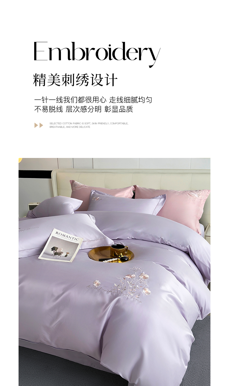 帛美家纺 2026新款全棉纯棉轻奢绣花四件套 花柔-罗兰紫
