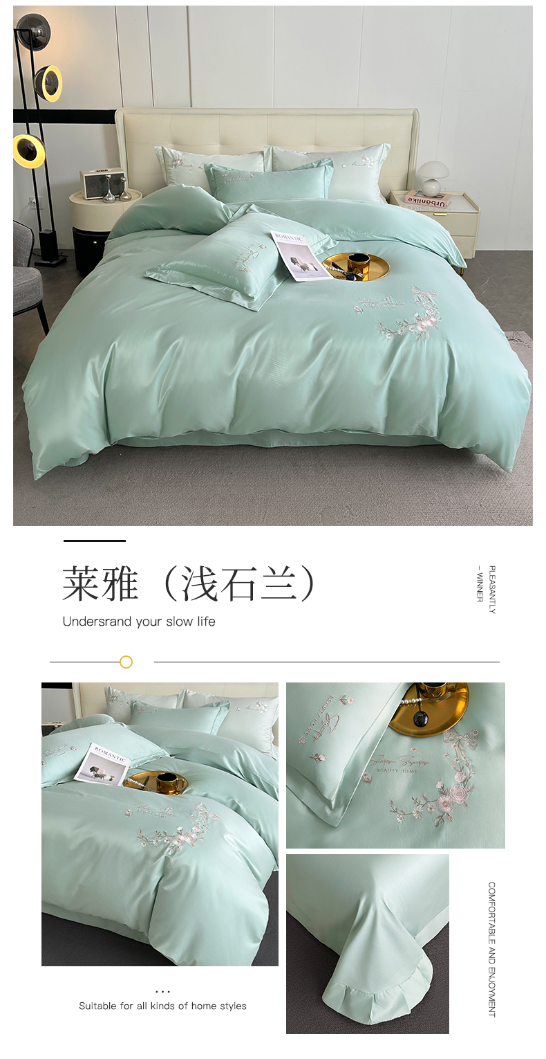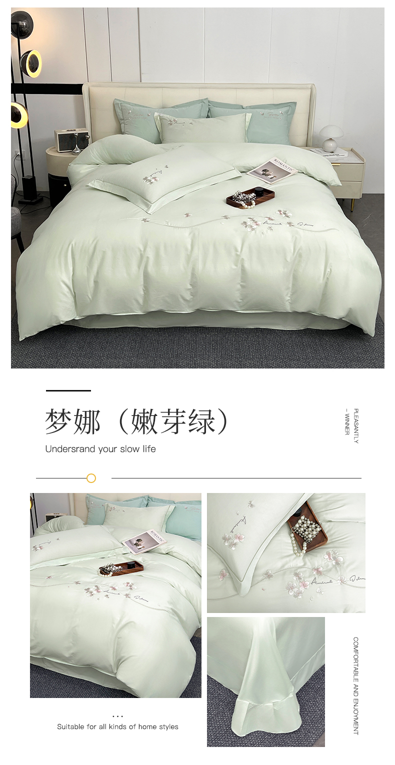 (总)帛美家纺 2026新款全棉纯棉轻奢绣花四件套,花柔-海棠粉,花柔-罗兰紫,花柔-天蓝,莱雅-高级灰,莱雅-浅石兰,梦娜-豆沙,梦娜-嫩芽绿,梦娜-晚波兰