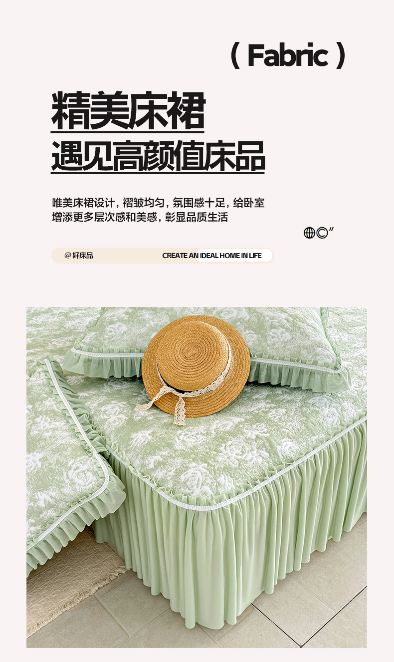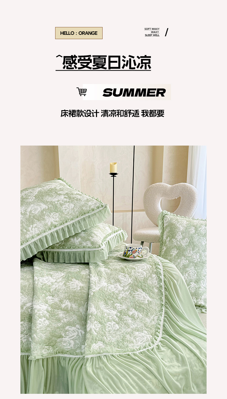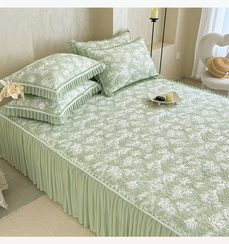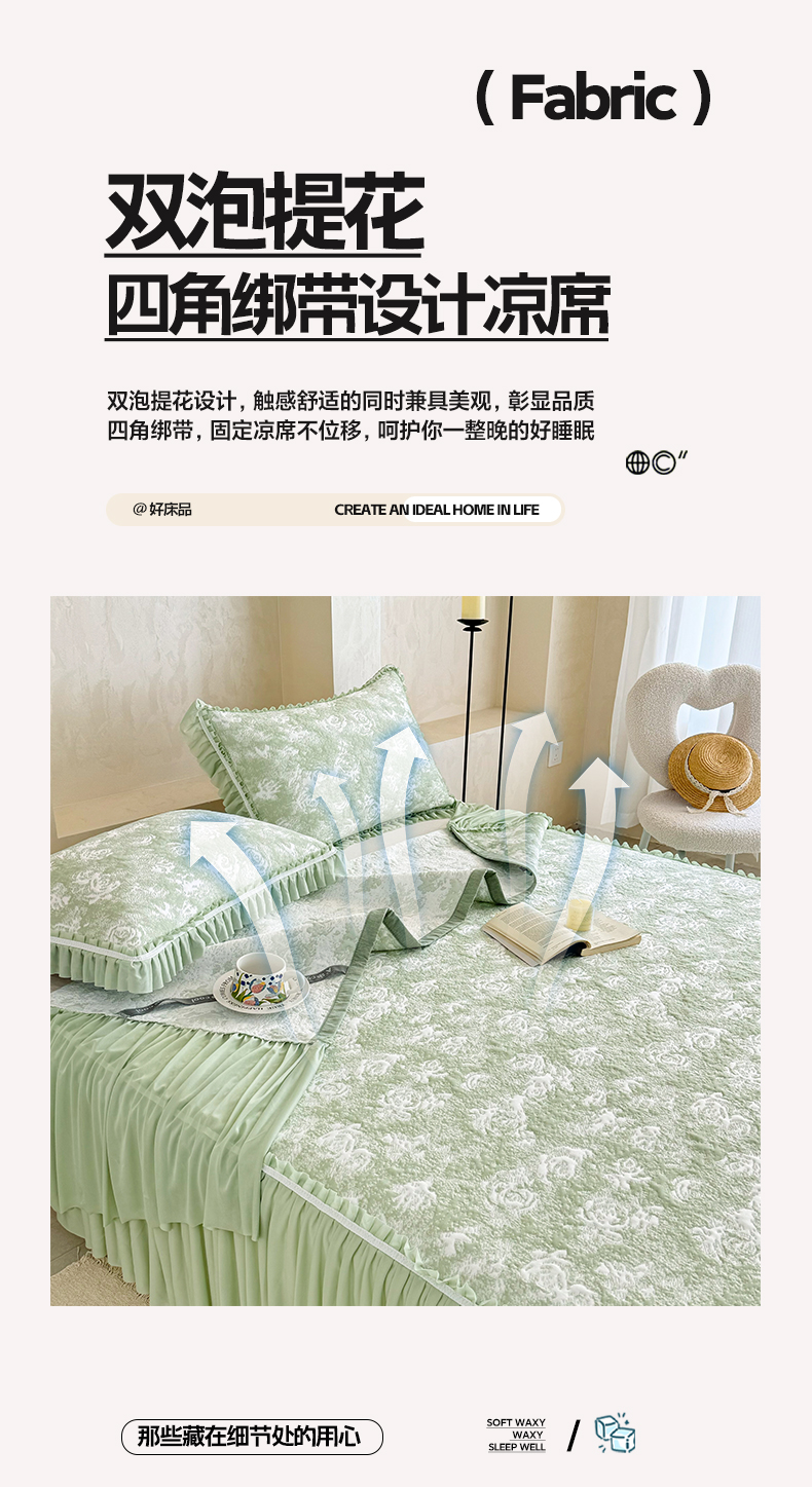 商品名称:雅居纺家纺 2026新款床裙款玫瑰系列凉感席 玫瑰-绿