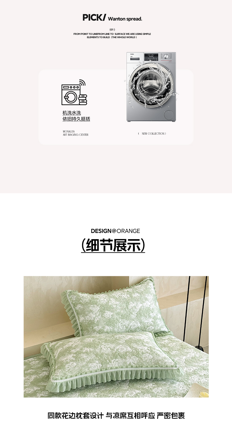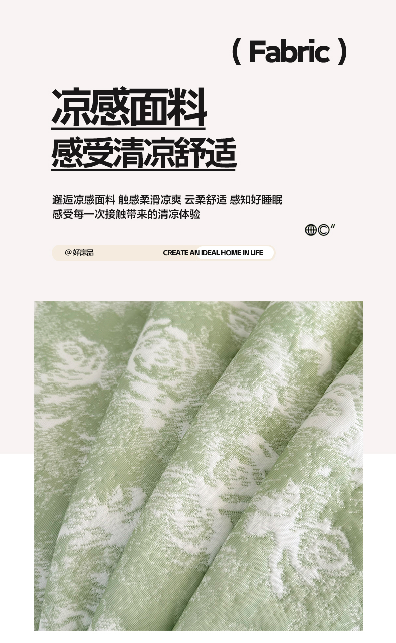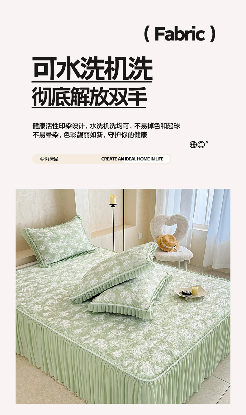 商品名称:雅居纺家纺 2026新款床裙款玫瑰系列凉感席 玫瑰-绿
