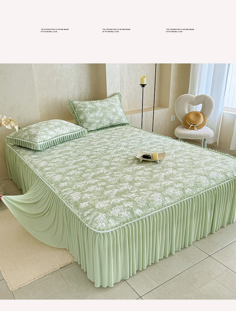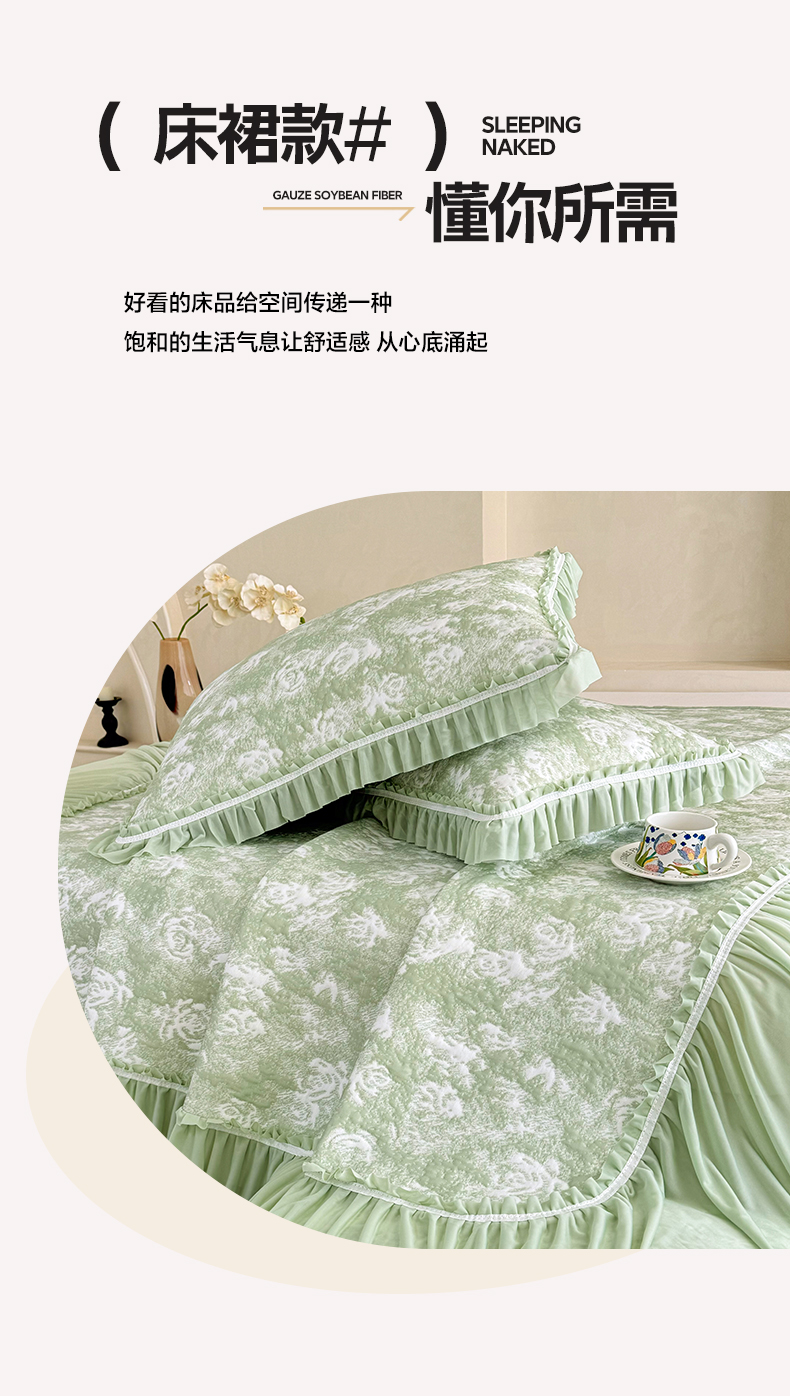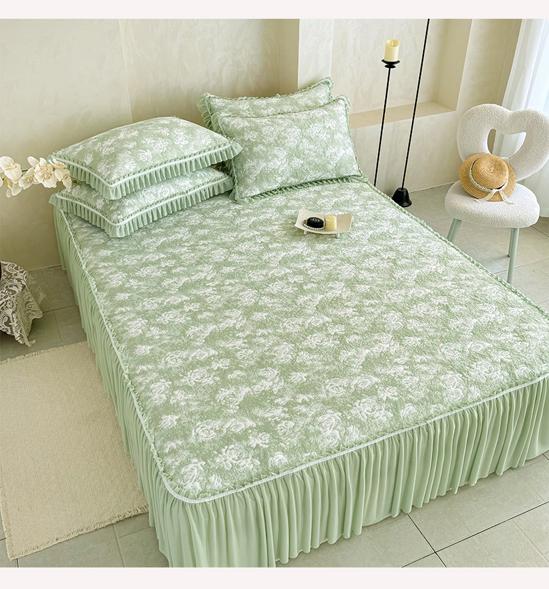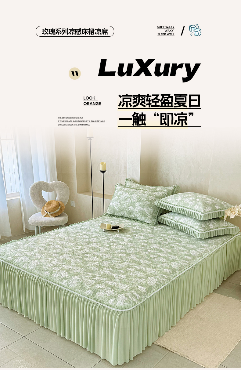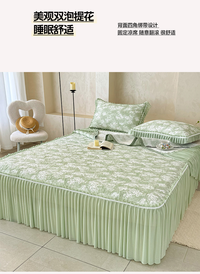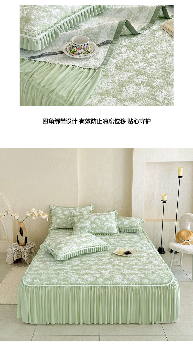 雅居纺家纺 2026新款床裙款玫瑰系列凉感席 玫瑰-绿