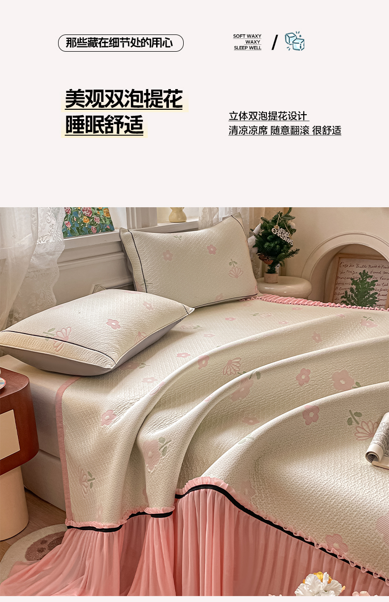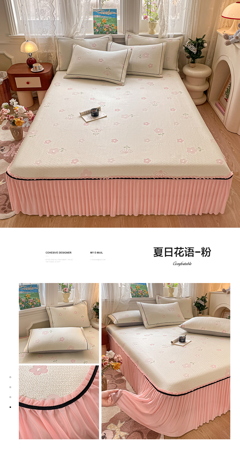 (总)雅居纺家纺 2026新款夏日花语系列凉感床裙凉席,夏日花语-粉,夏日花语-灰,夏日花语-蓝