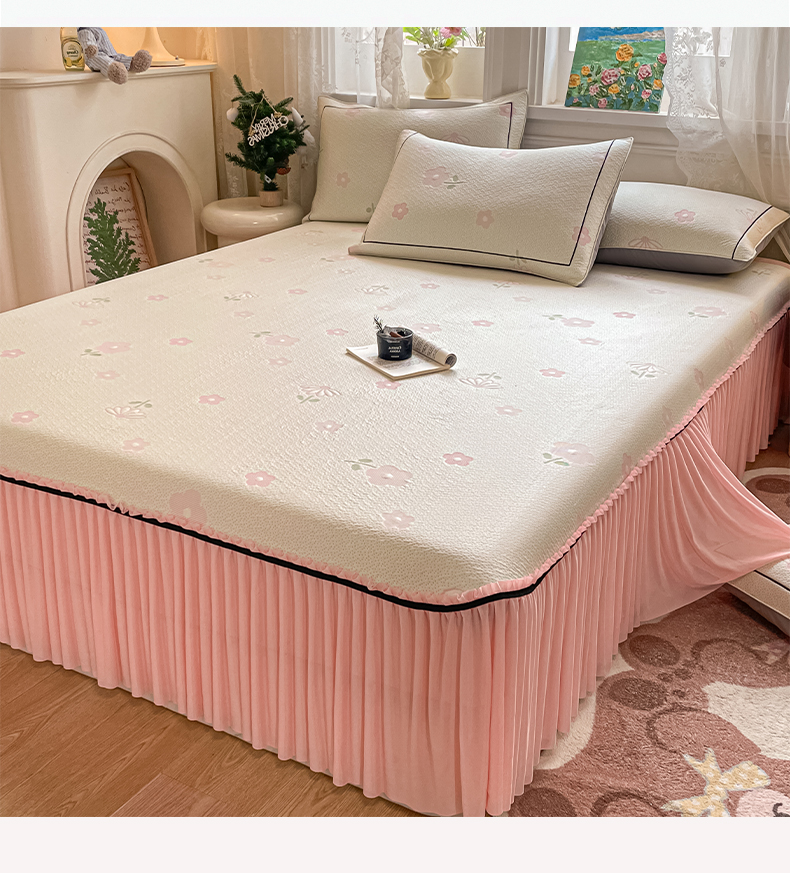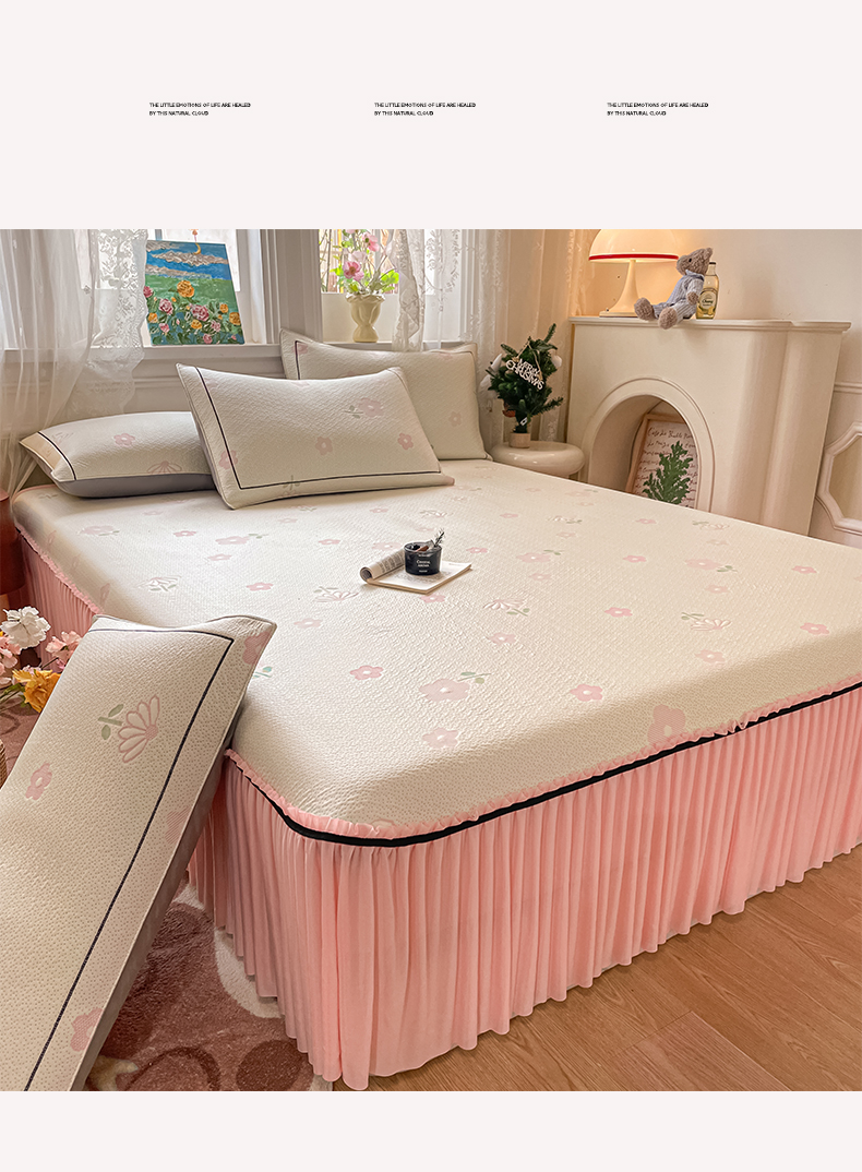 雅居纺家纺 2026新款夏日花语系列凉感床裙凉席 夏日花语-粉