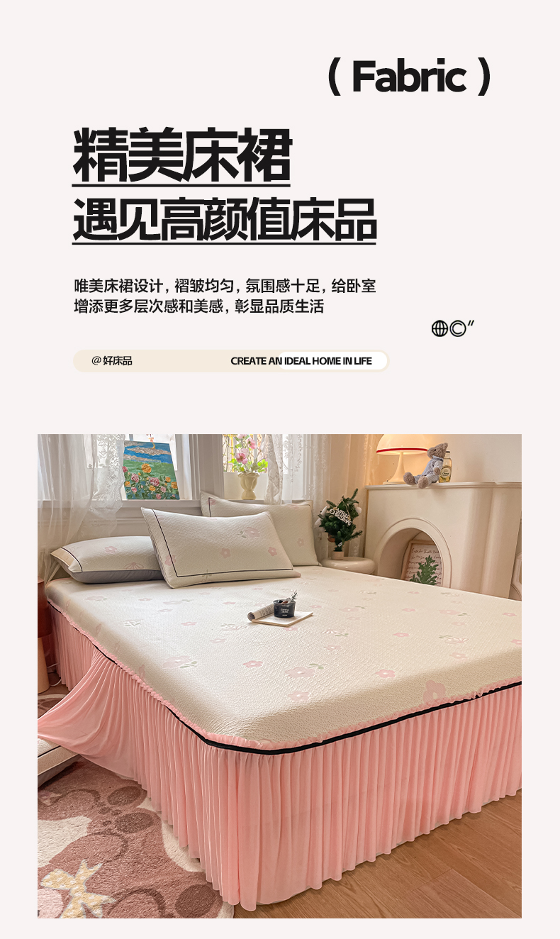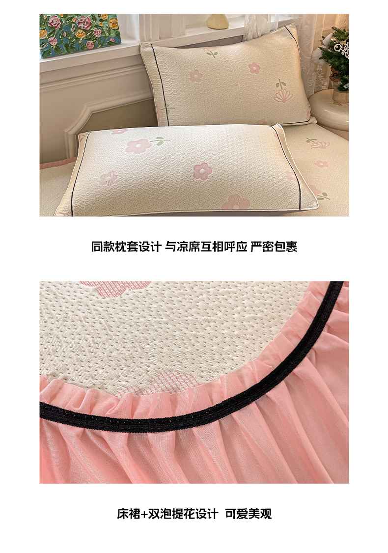 商品名称:雅居纺家纺 2026新款夏日花语系列凉感床裙凉席 夏日花语-粉