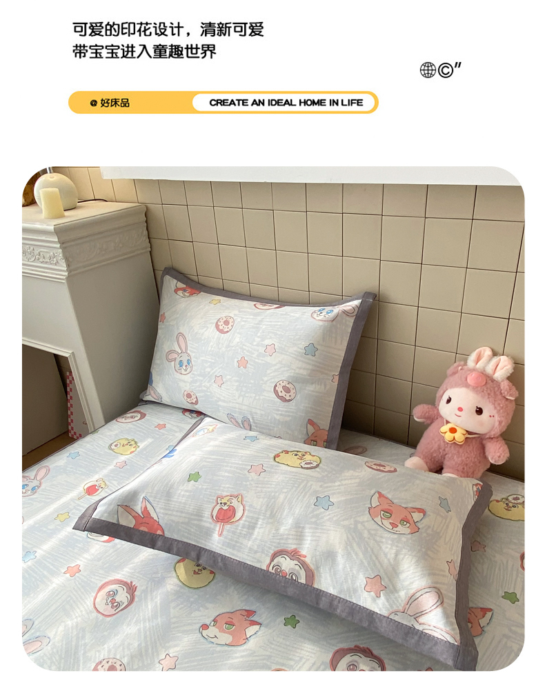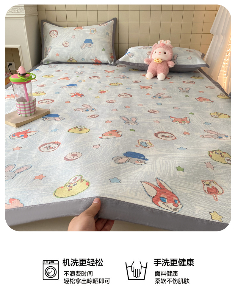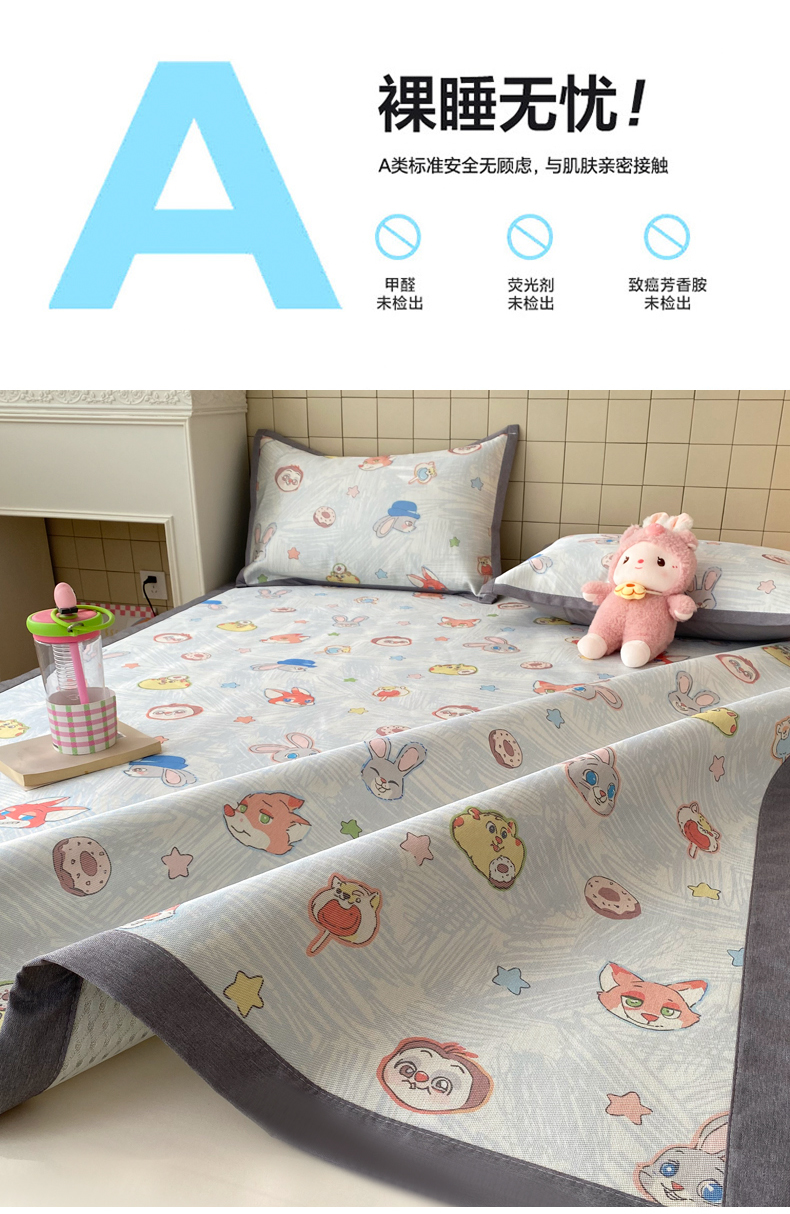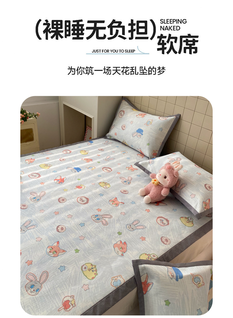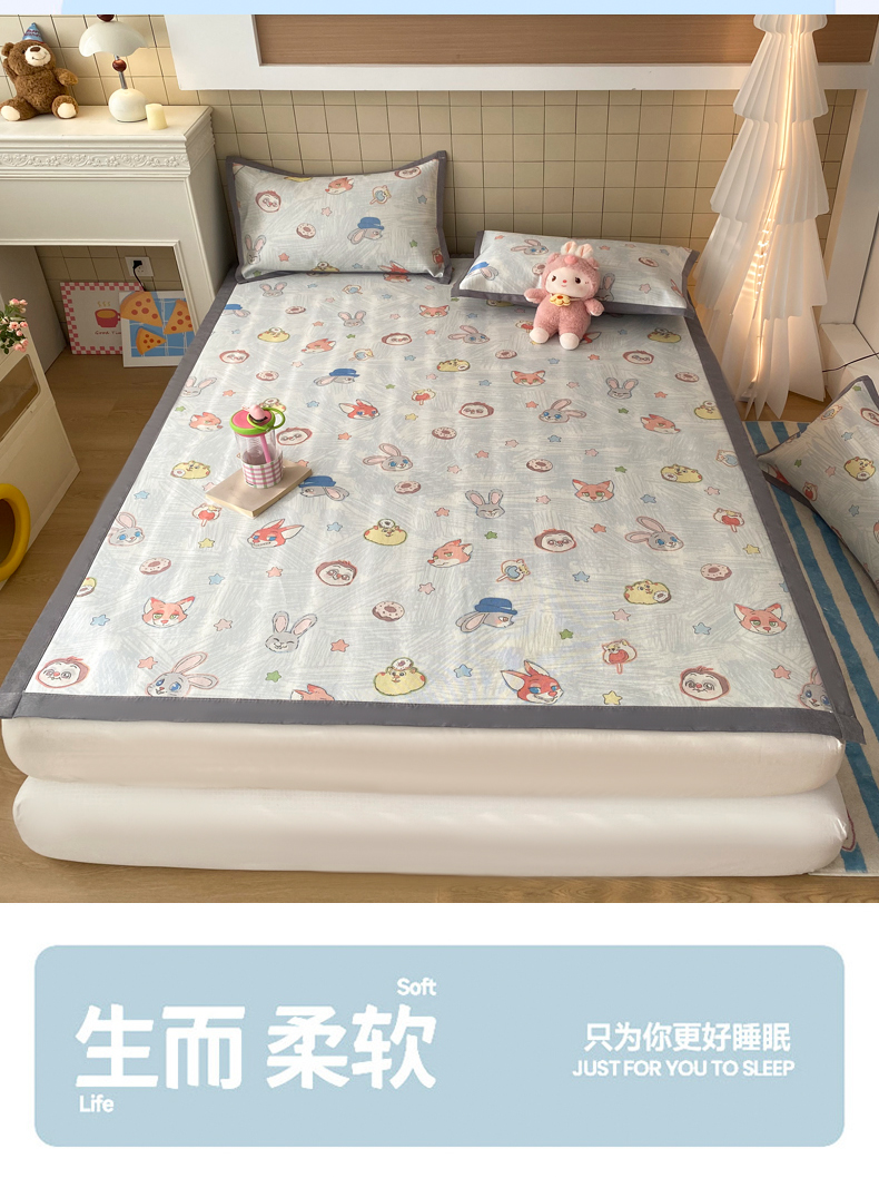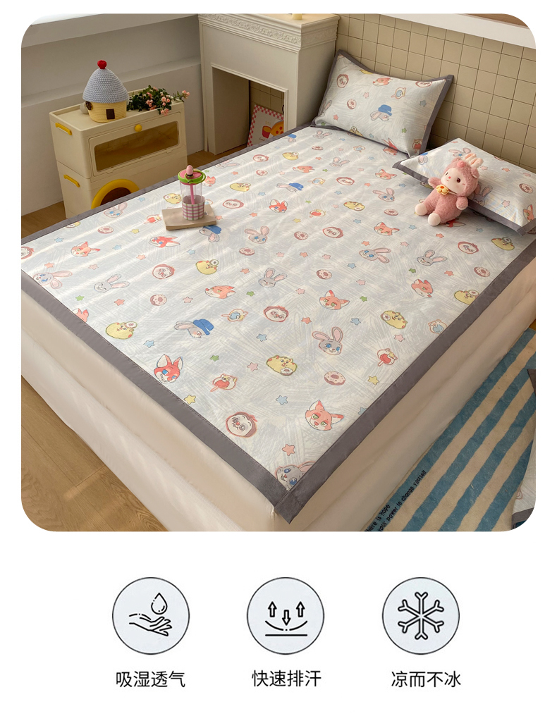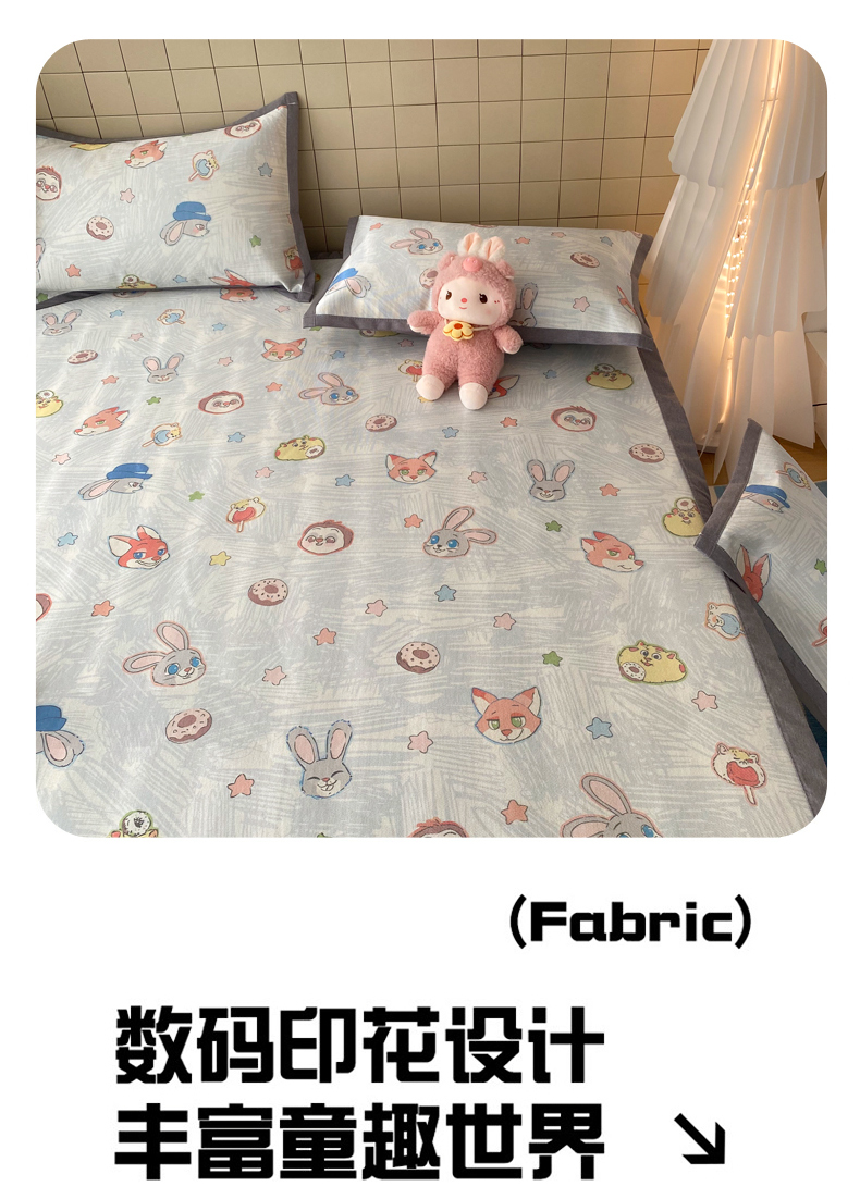 商品名称:金盛纺 2026新款A类数码印花冰丝席(可定制)-床席款 动物天团