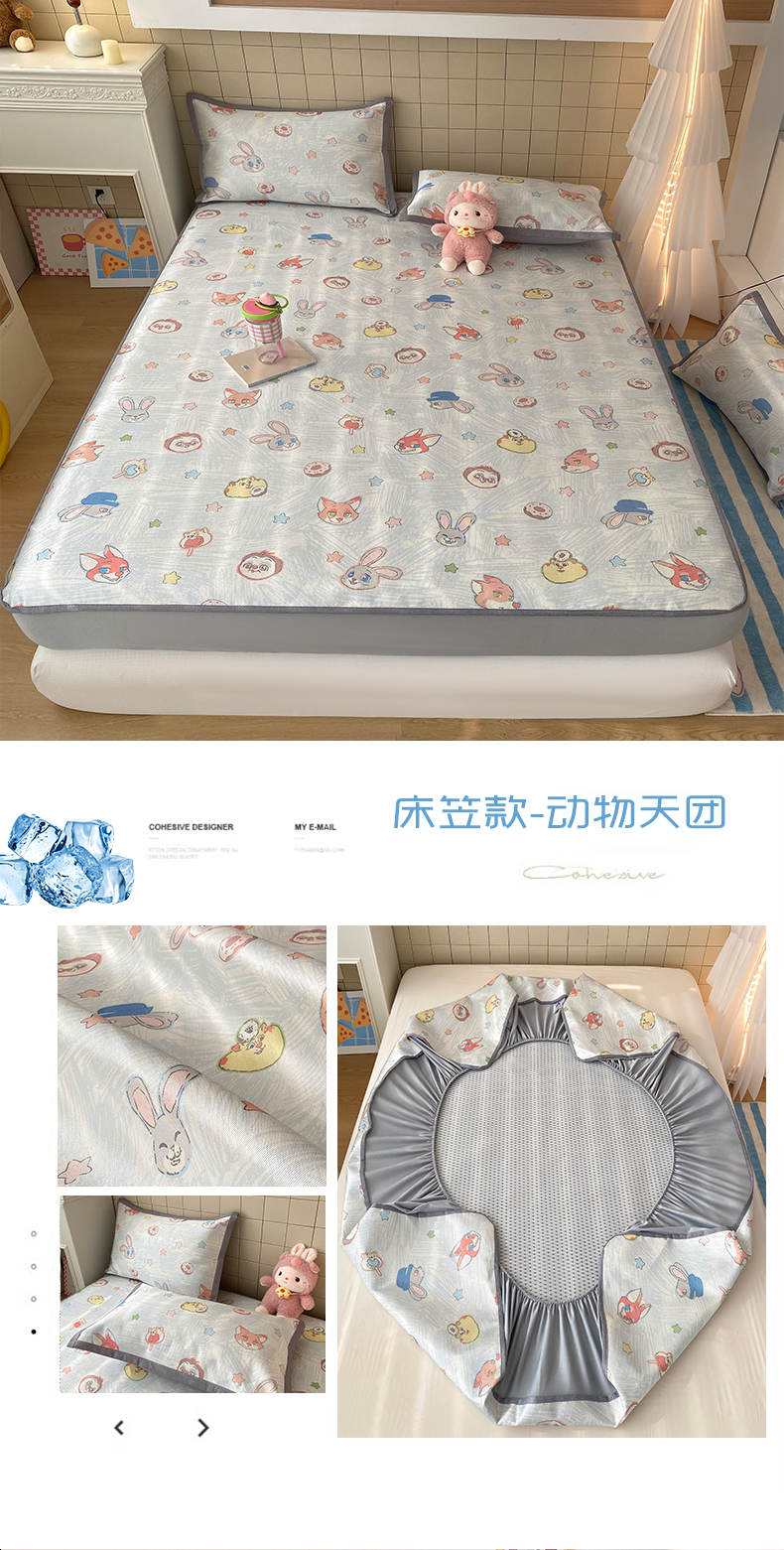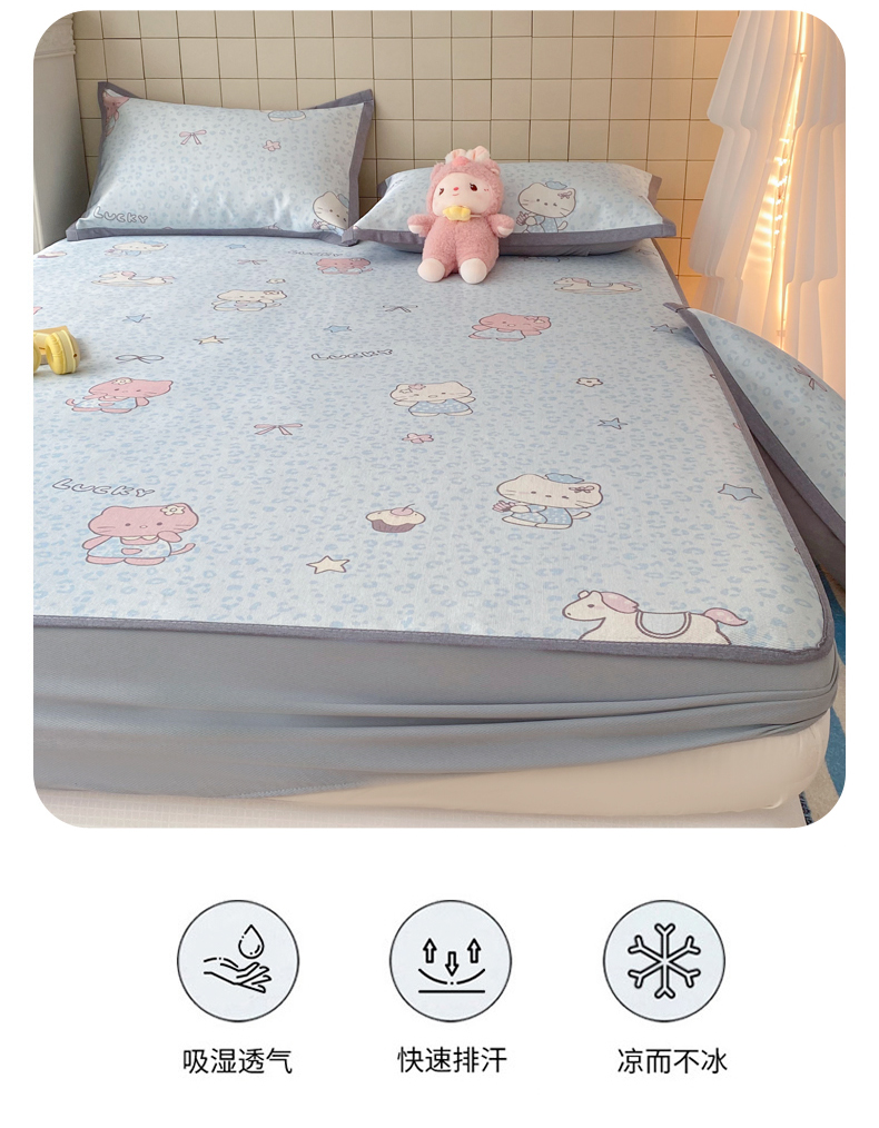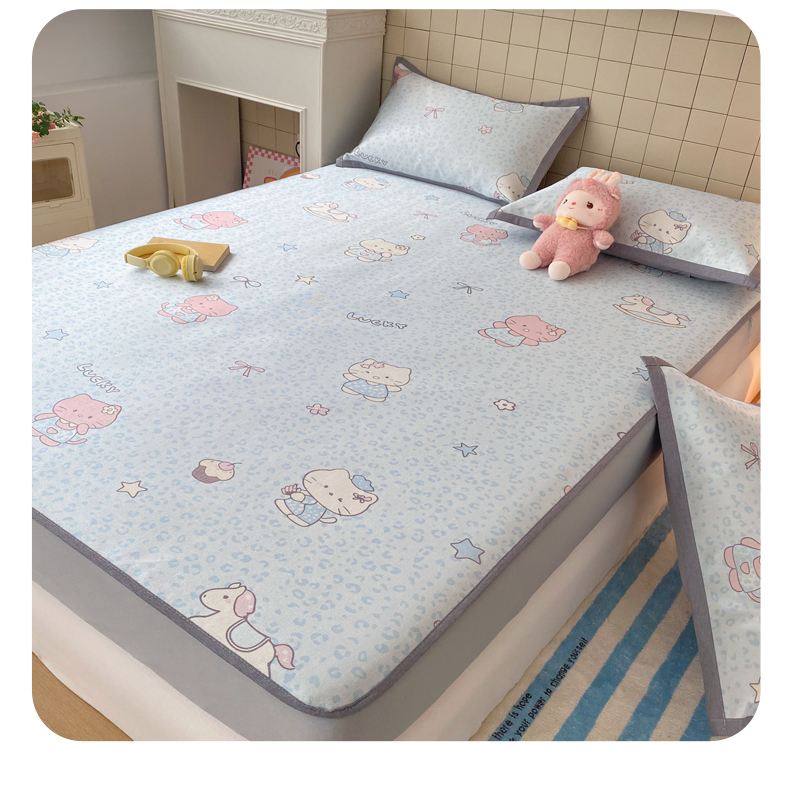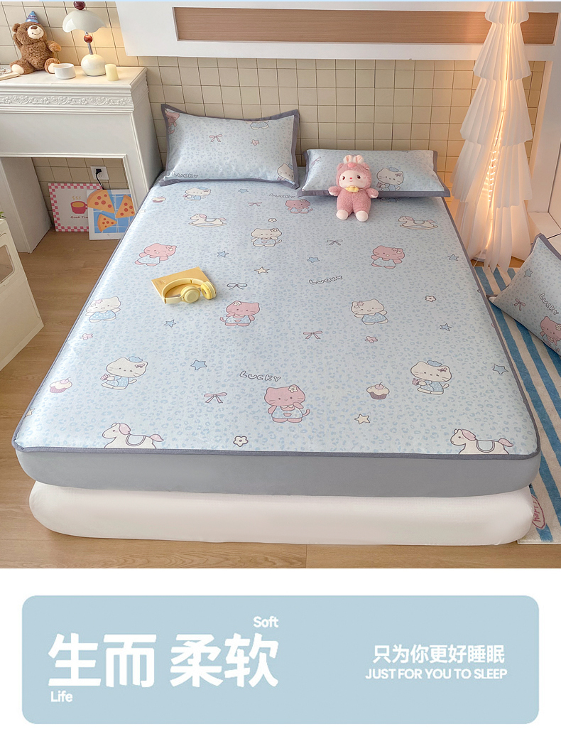 金盛纺 2026新款A类数码印花冰丝席(可定制)-床笠款 蓝猫
