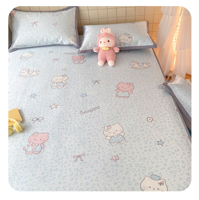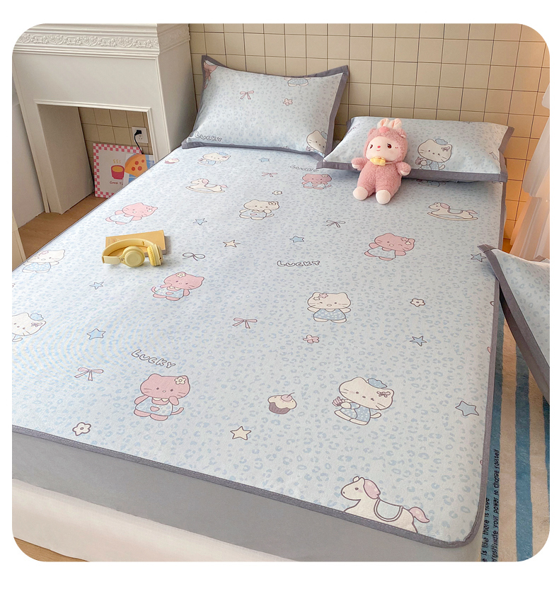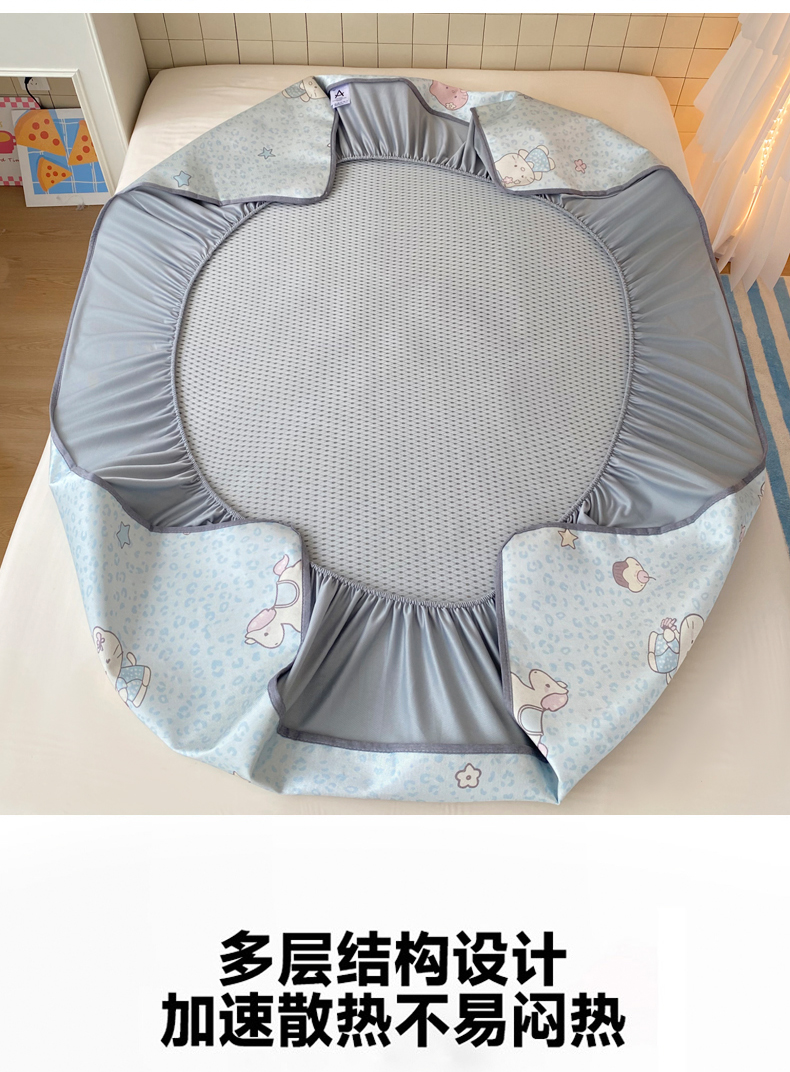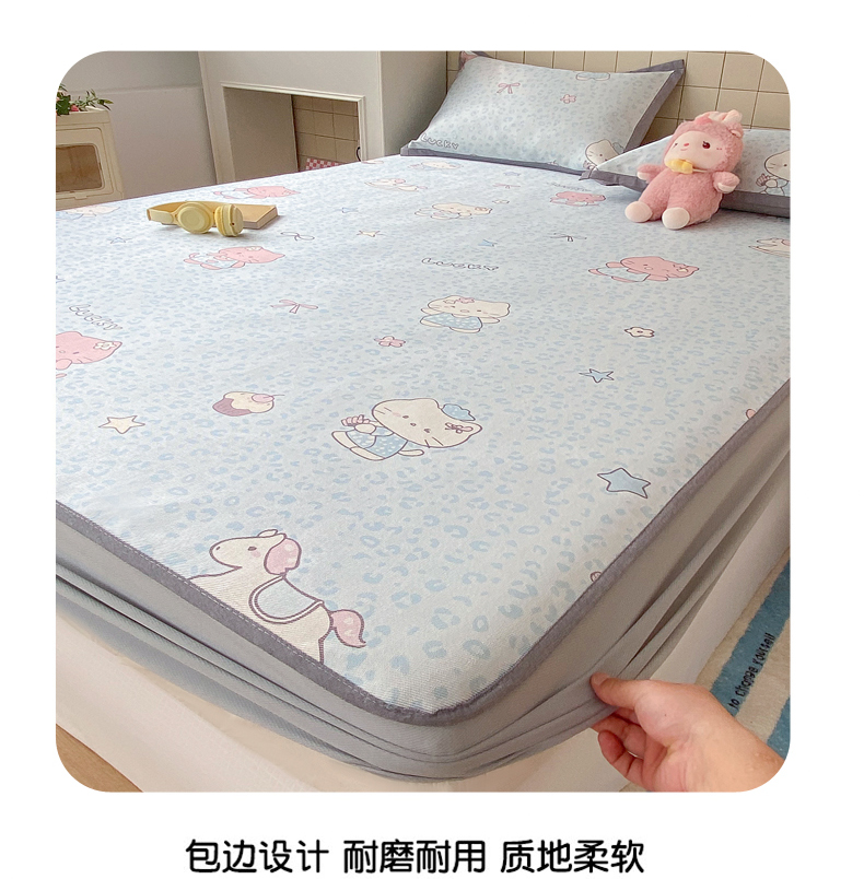 商品名称:金盛纺 2026新款A类数码印花冰丝席(可定制)-床笠款 蓝猫