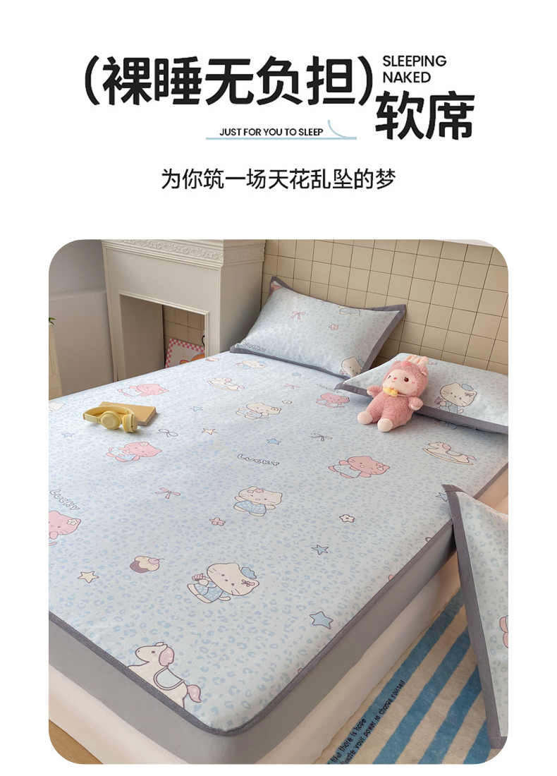 (总)金盛纺 2026新款A类数码印花冰丝席(可定制)-床笠款,星星仔,彩虹小马,草莓心,动物天团,桂闲风,花间甜语,蓝猫,泡泡嘟嘟,夏日萌龙记,星月小熊