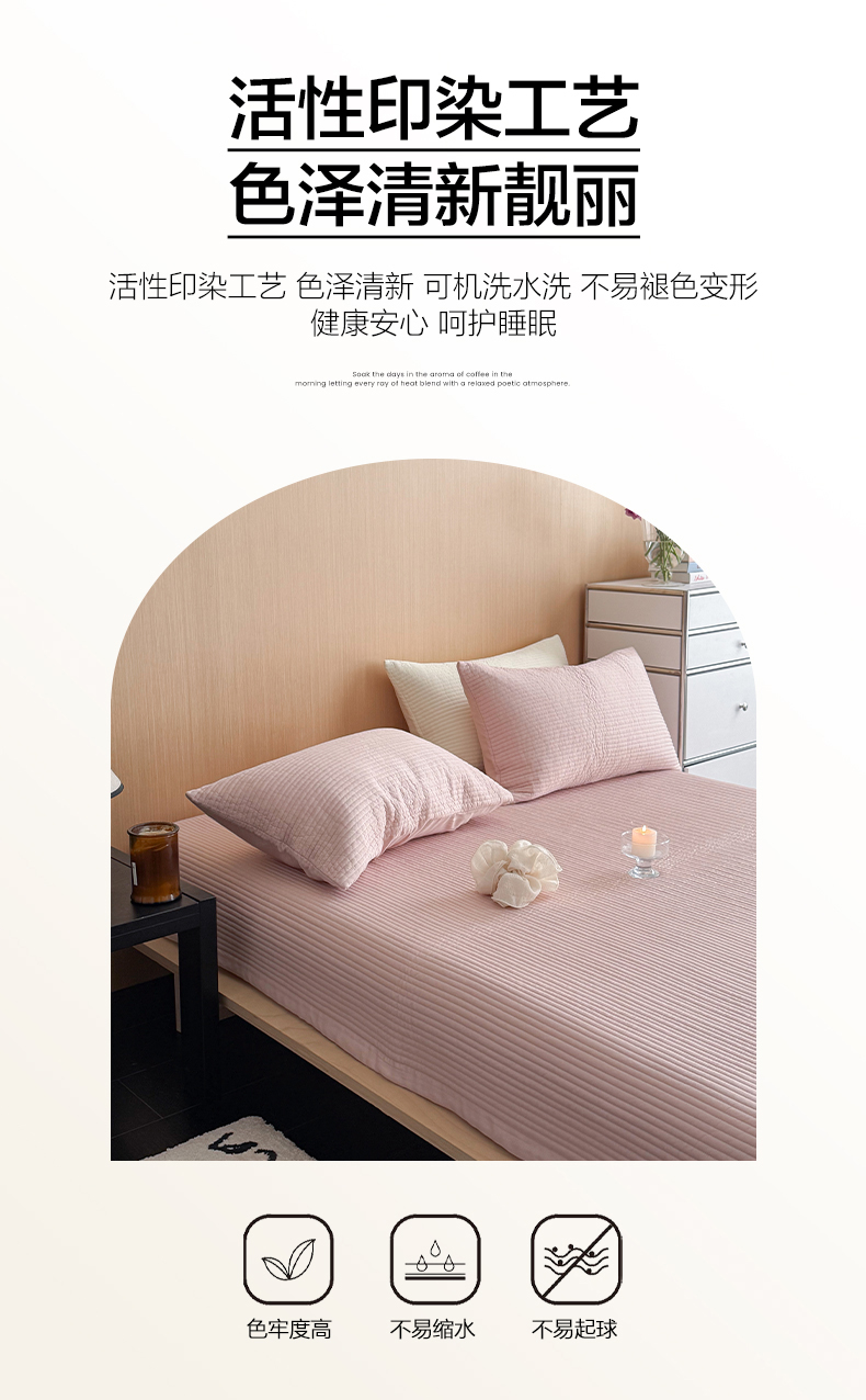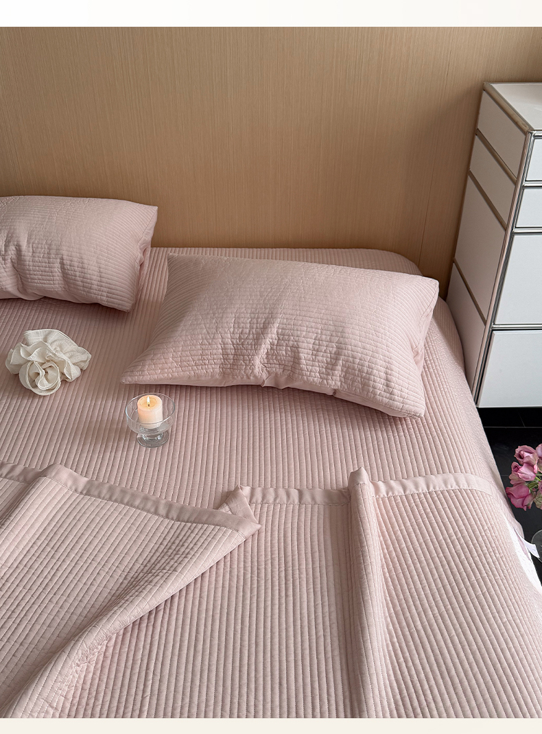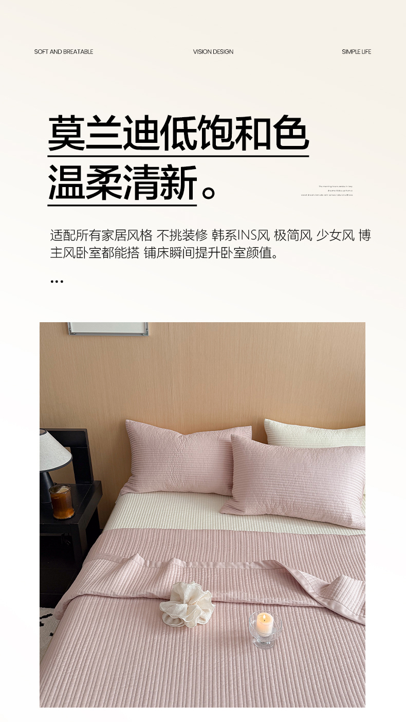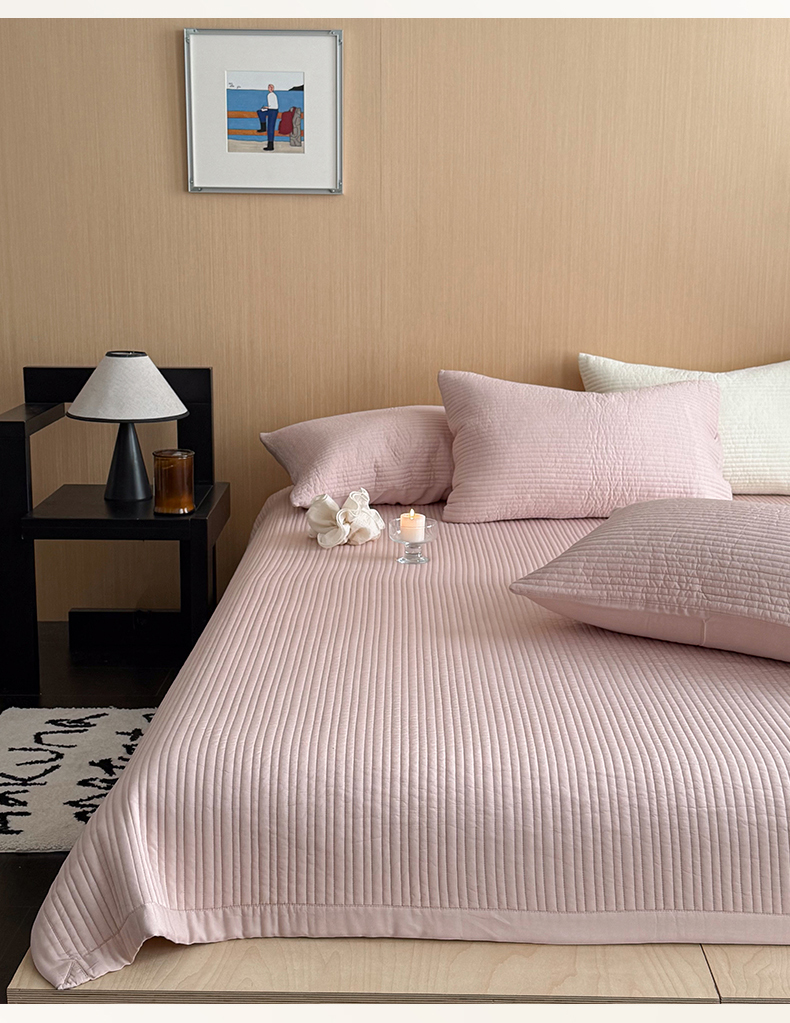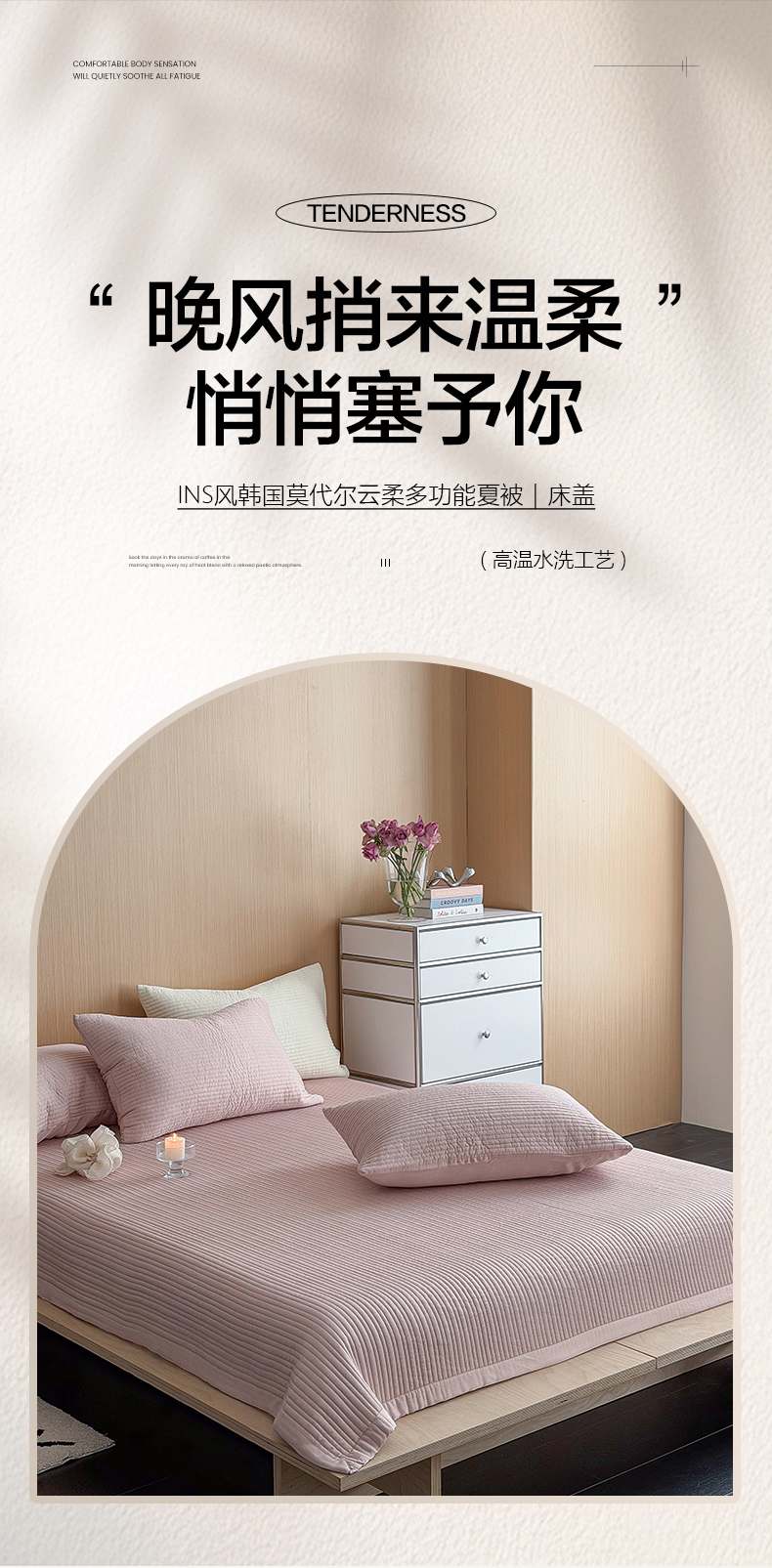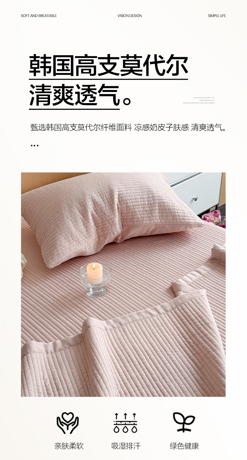 漫调家纺 2026新款韩国莫代尔夏被床盖系列-宽边直条款 柔粉
