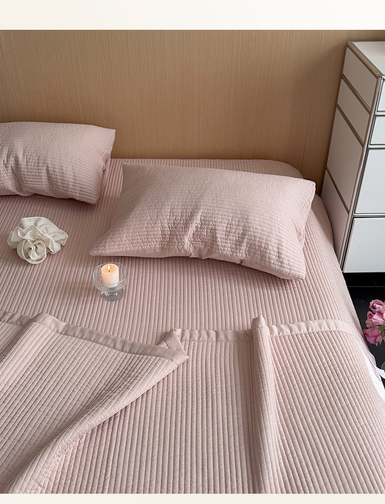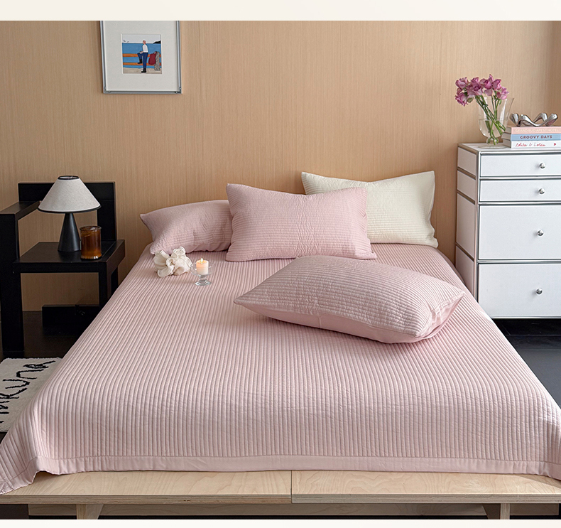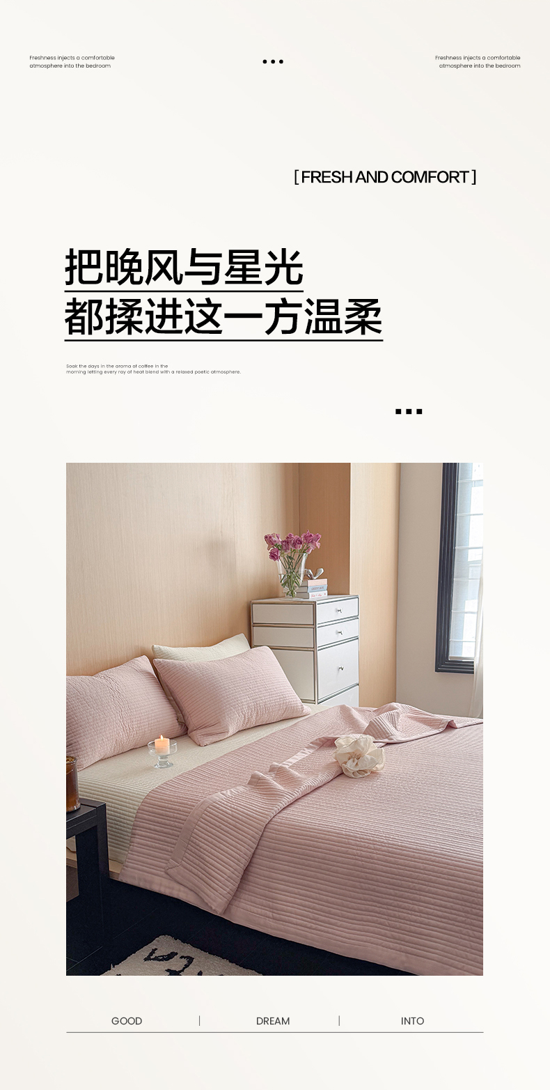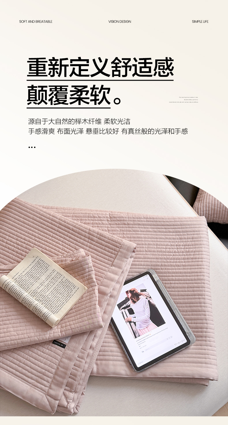 商品名称:漫调家纺 2026新款韩国莫代尔夏被床盖系列-宽边直条款 柔粉