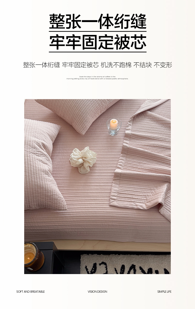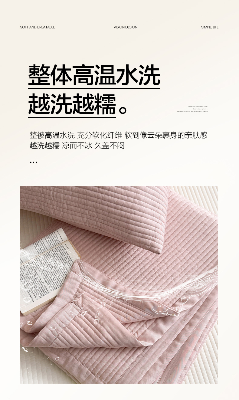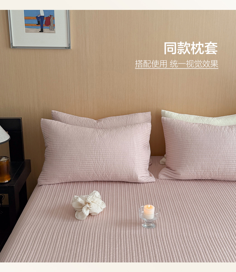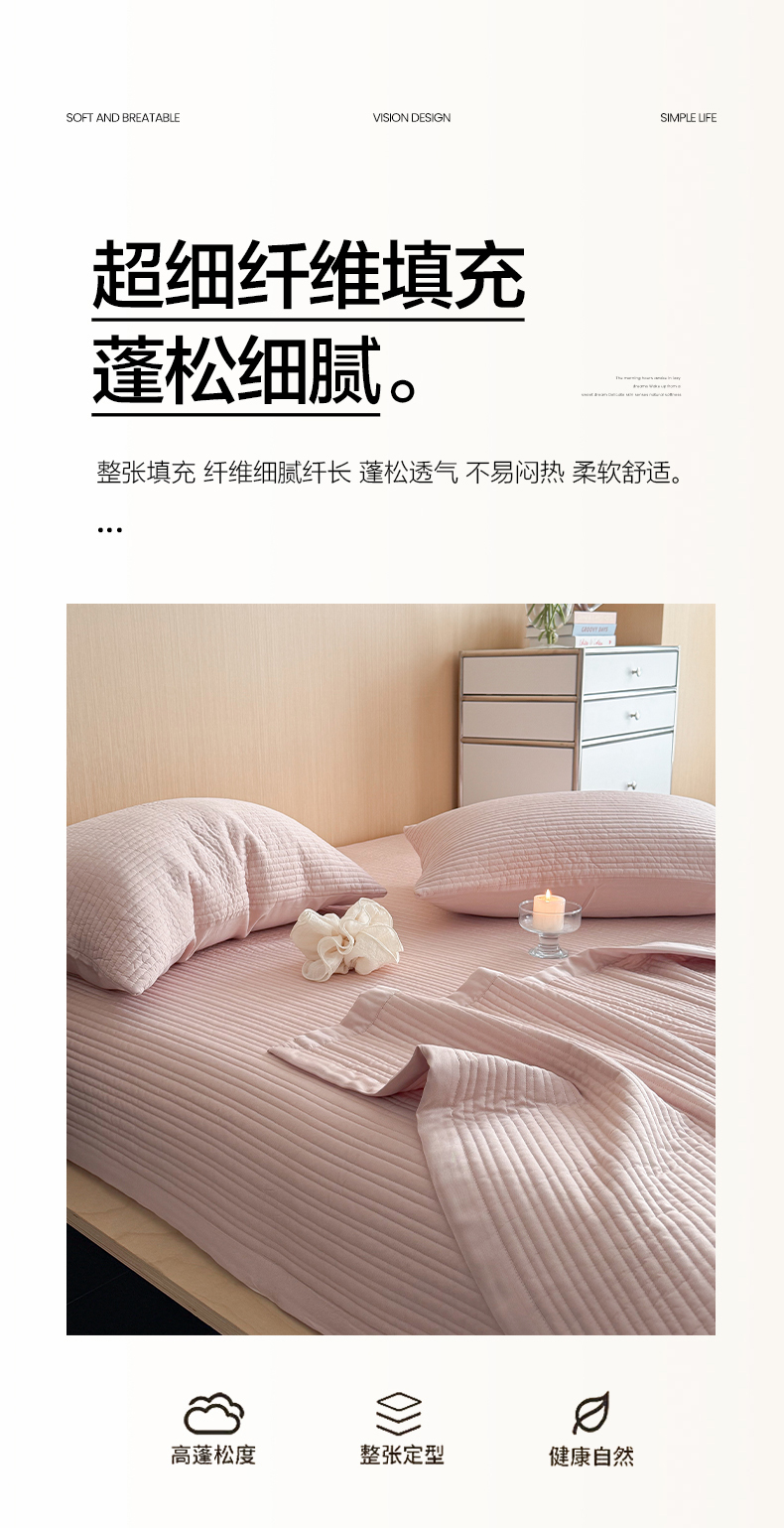商品名称:漫调家纺 2026新款韩国莫代尔夏被床盖系列-宽边直条款 柔粉