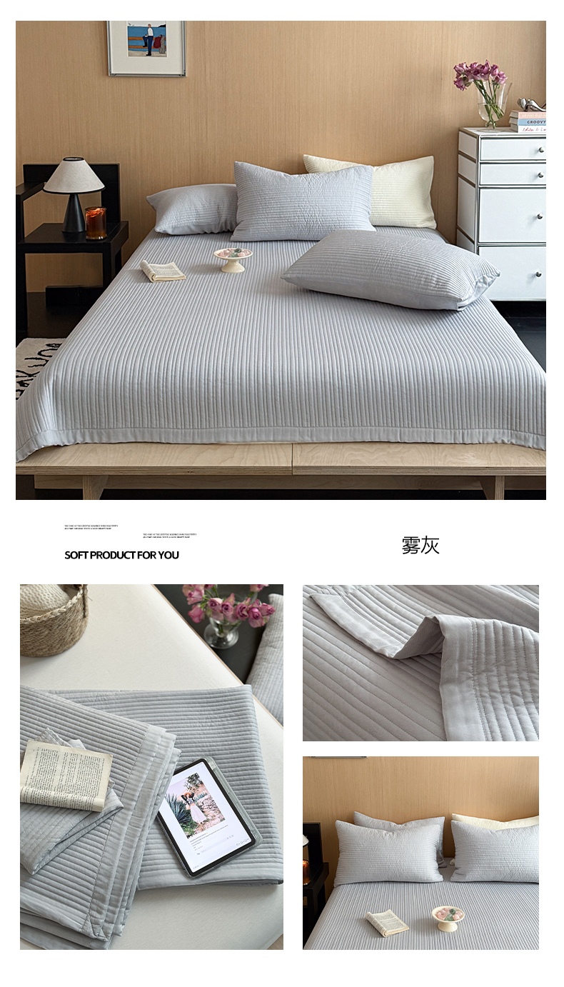 (总)漫调家纺 2026新款韩国莫代尔夏被床盖系列-宽边直条款,海盐蓝,可可暖棕,奶杏,柔粉,雾灰