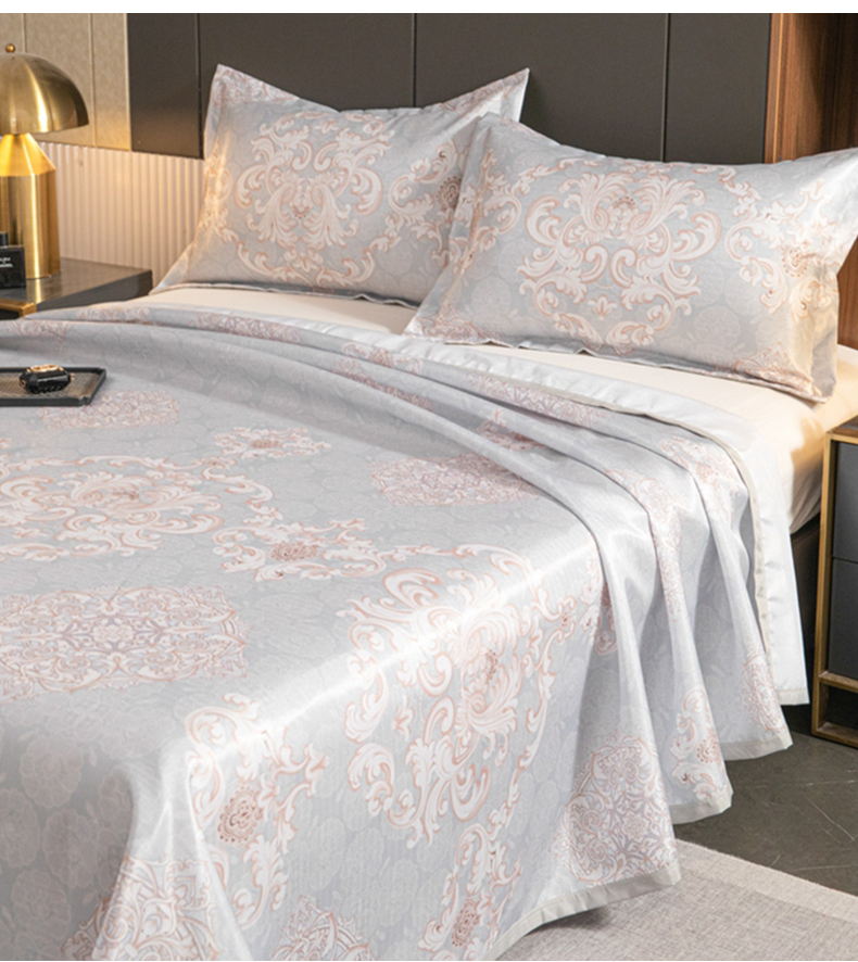 星窝家纺 2026新款直播电商优选可机洗斜纹提花冰丝凉席三件套 奢雅灰