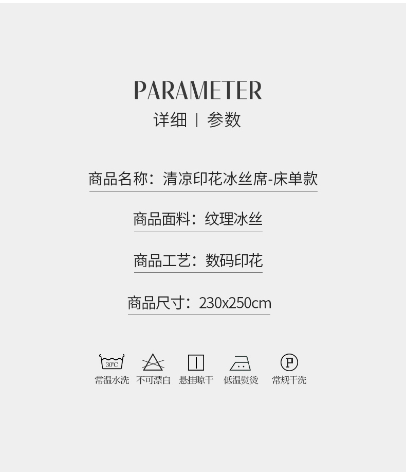 商品名称:星窝家纺 2026新款直播电商优选可机洗斜纹提花冰丝凉席三件套 奢雅灰