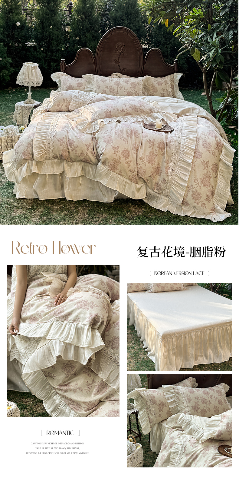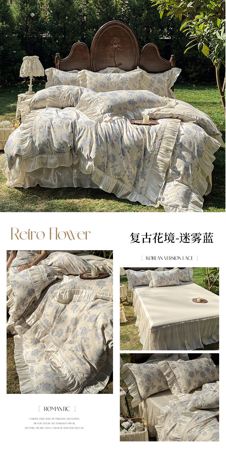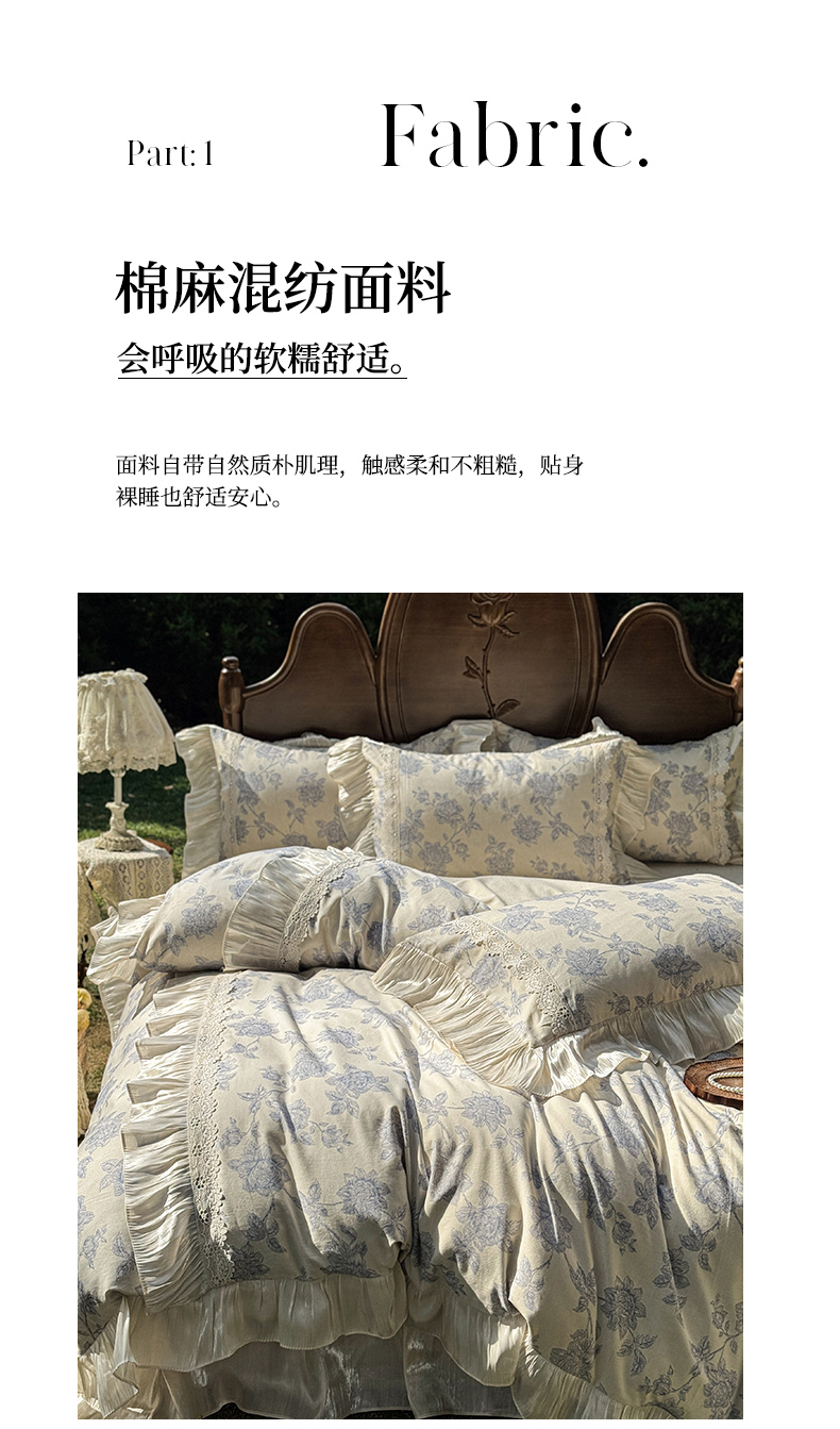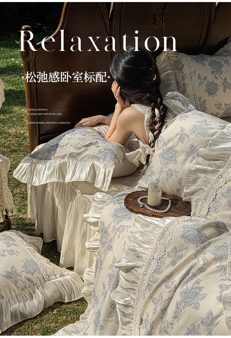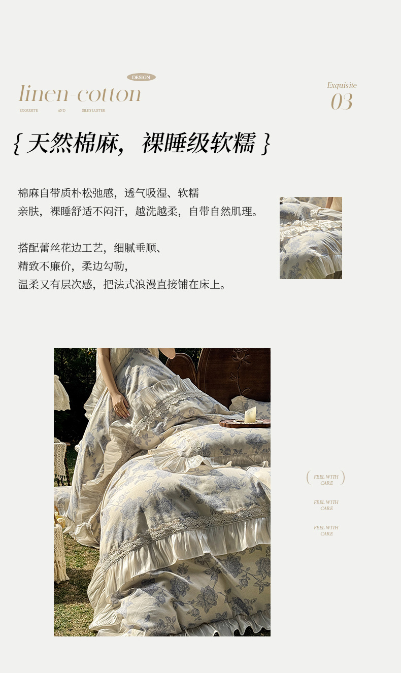 当前位置: 91家纺网 > 商品网购 > 床品套件 > 四件套 > 棉麻四件套 > (总)乐朵家居 2026新款 复古花镜 全棉棉麻 床裙四件套
