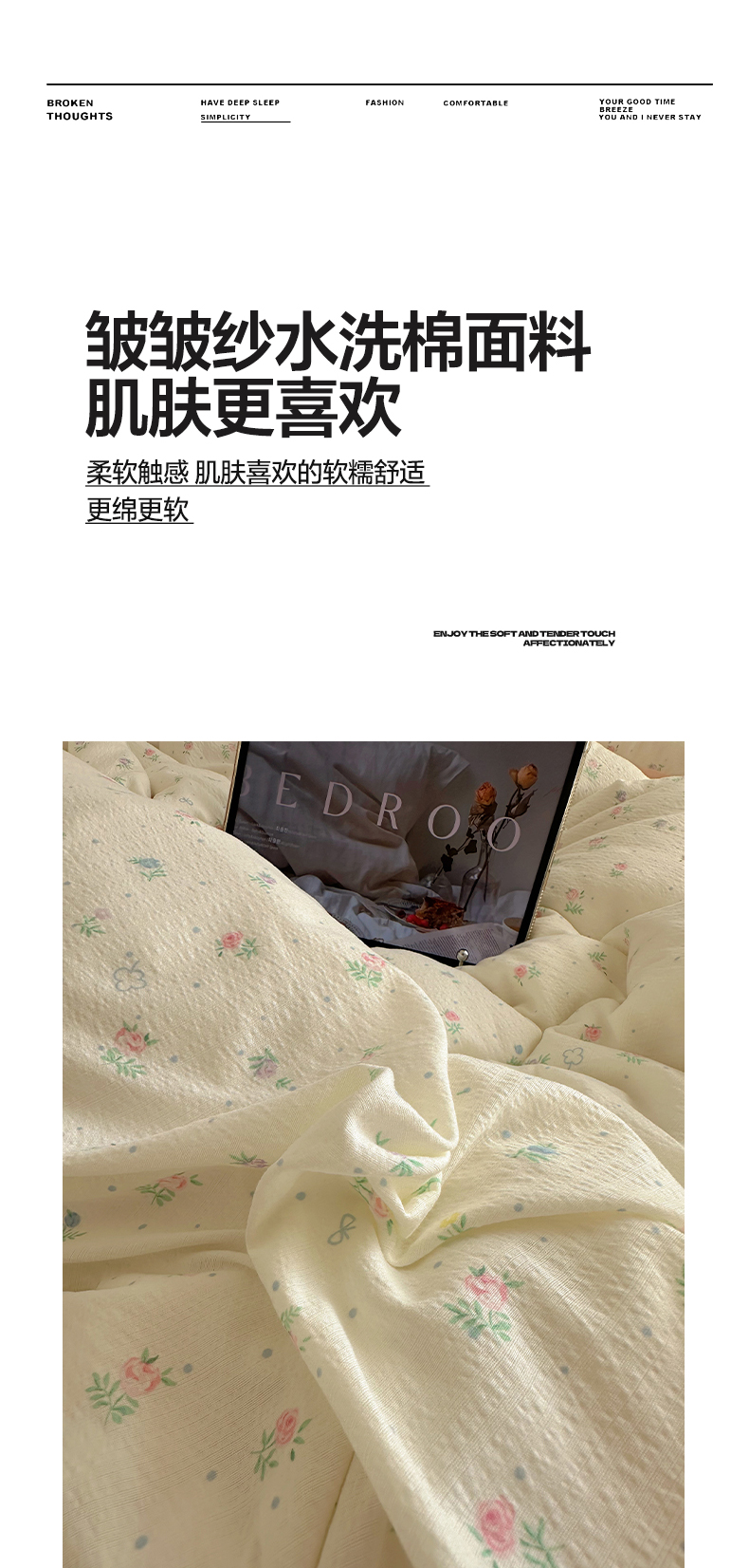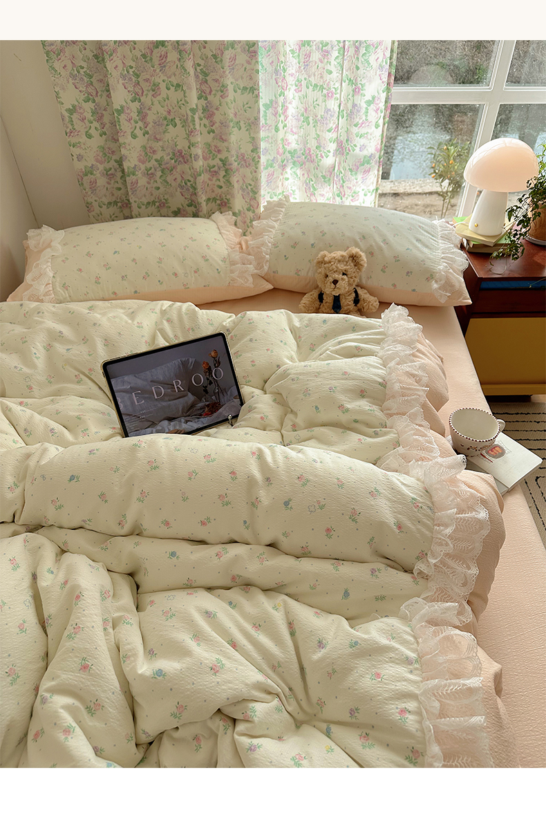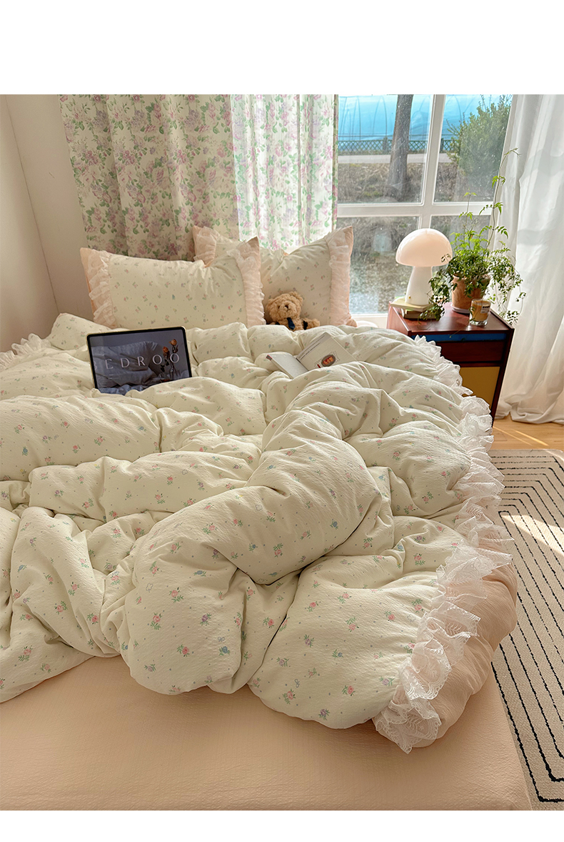 (总)山茶家居-原创设计(原山茶家纺) 2026新款皱皱纱水洗棉花边四件套-清雾系列,清雾-蕾丝粉,清雾-蕾丝蓝,清雾-蕾丝米,清雾-小粉花,清雾-小黄花