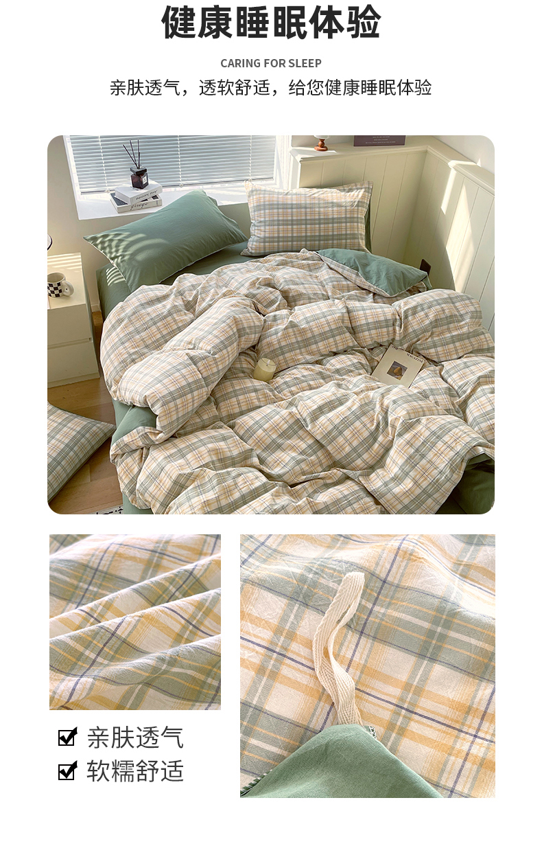 当前位置: 91家纺网 > 商品网购 > 床品套件 > 四件套 > 全棉普通四件套 > 春皖家纺 2026春夏新款全棉纯棉水洗棉四件套 翠竹-果条