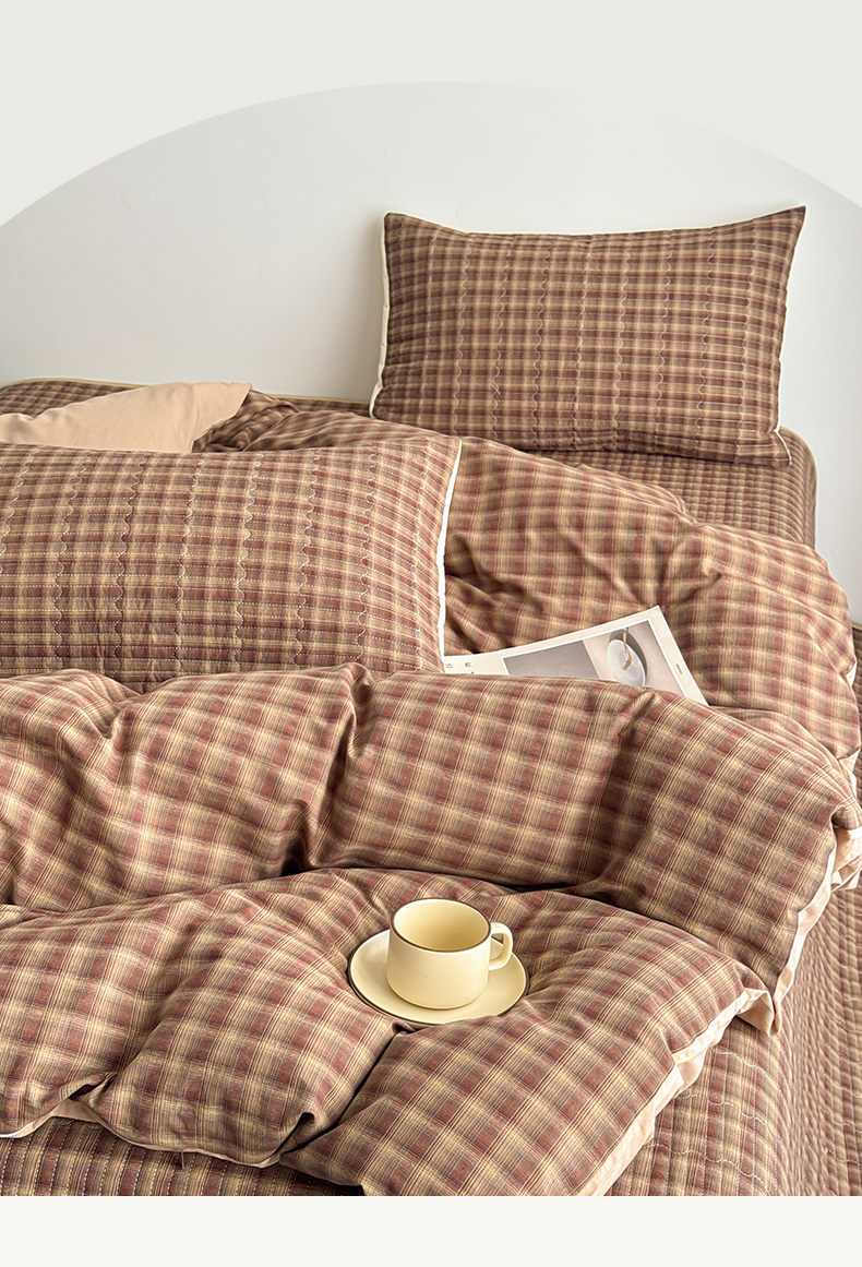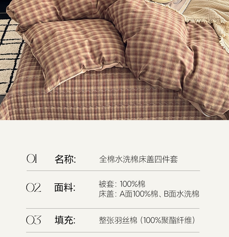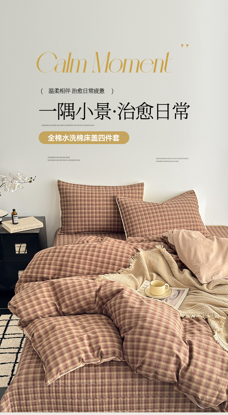 当前位置: 91家纺网 > 商品网购 > 床品套件 > 四件套 > 全棉普通四件套 > 妮可 2026新款全棉色织水洗棉床盖四件套-伦敦生活系列 伦敦生活-咖格