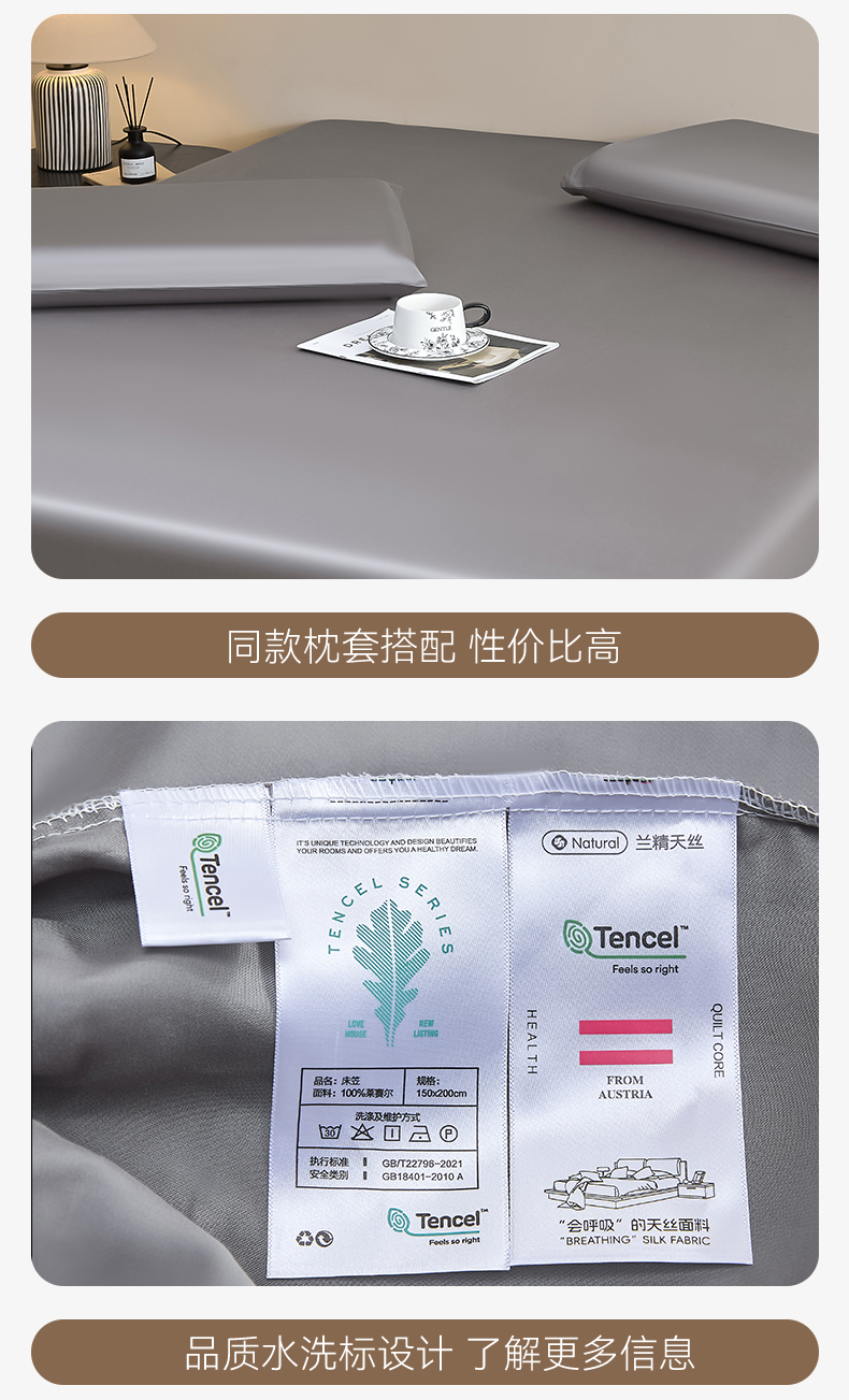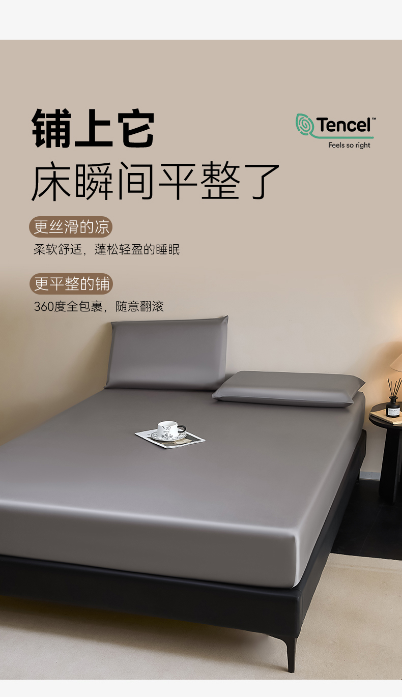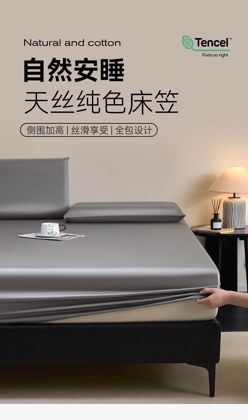 商品名称:DC 2026新款莱赛尔天丝纯色单品床笠 经典灰