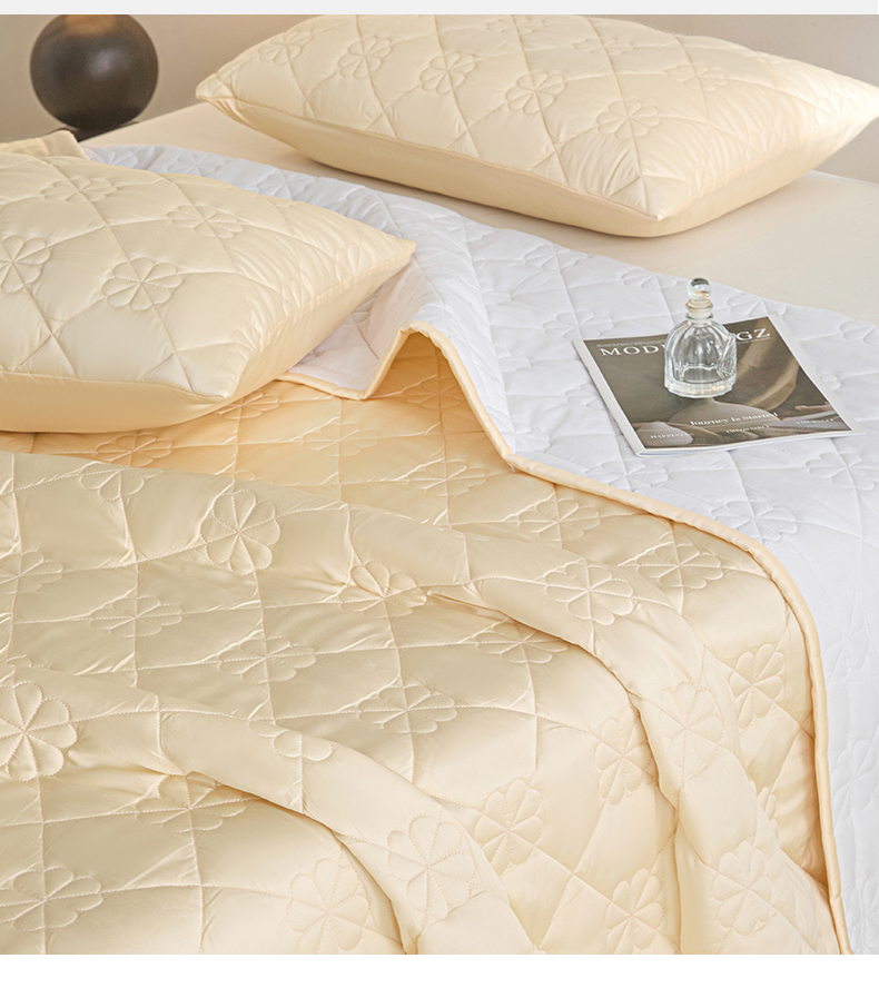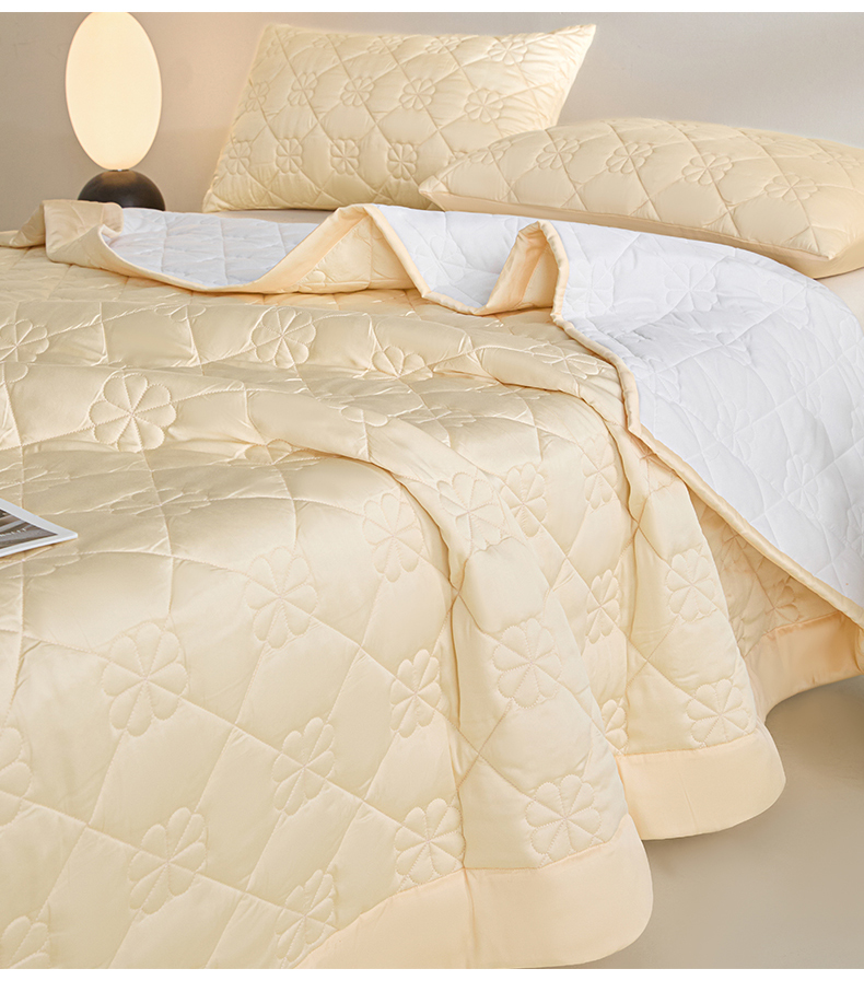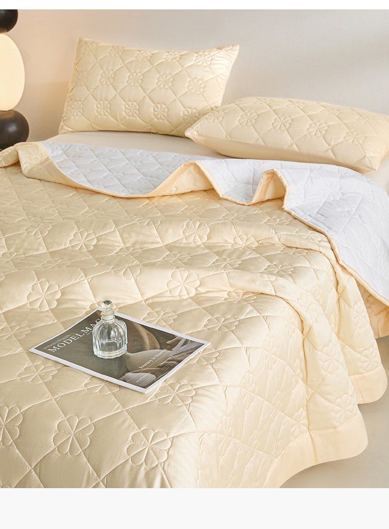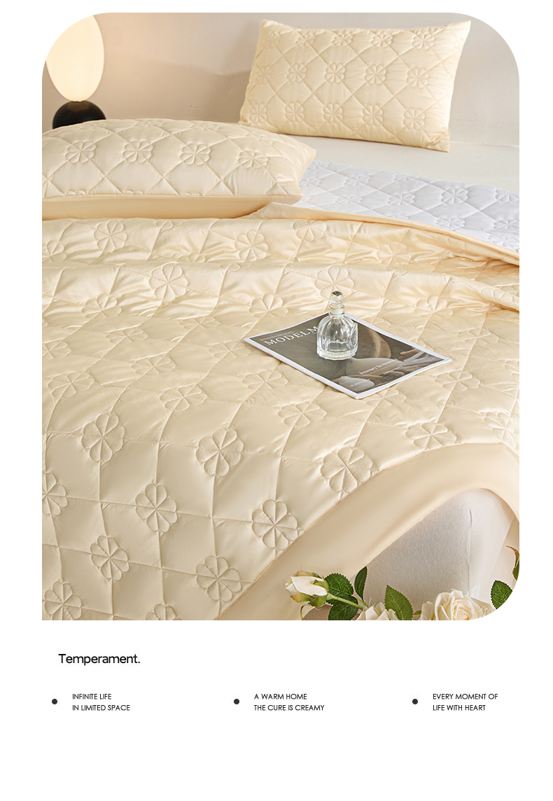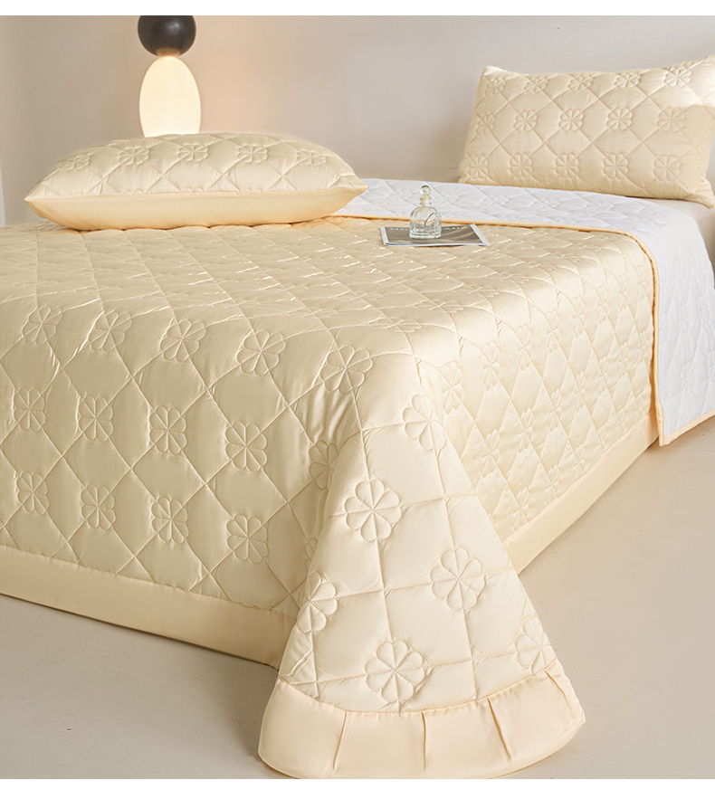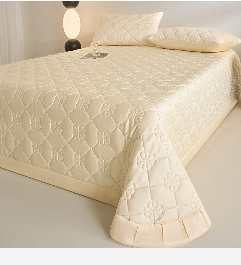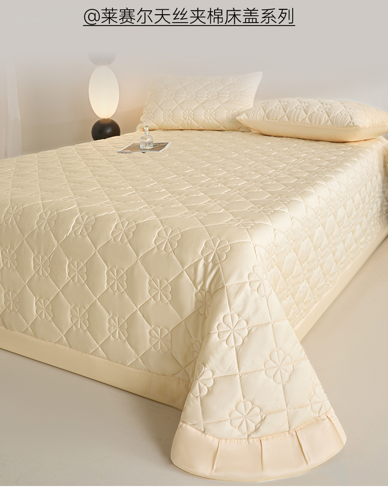 DC 2026新款莱赛尔天丝夹棉花朵绗缝单品床盖 杏白