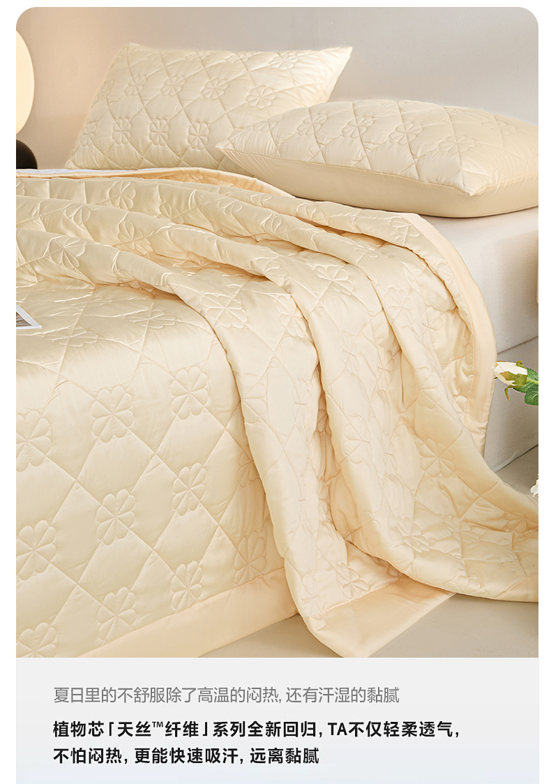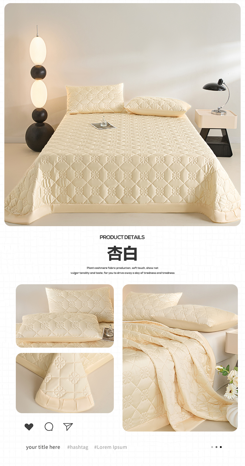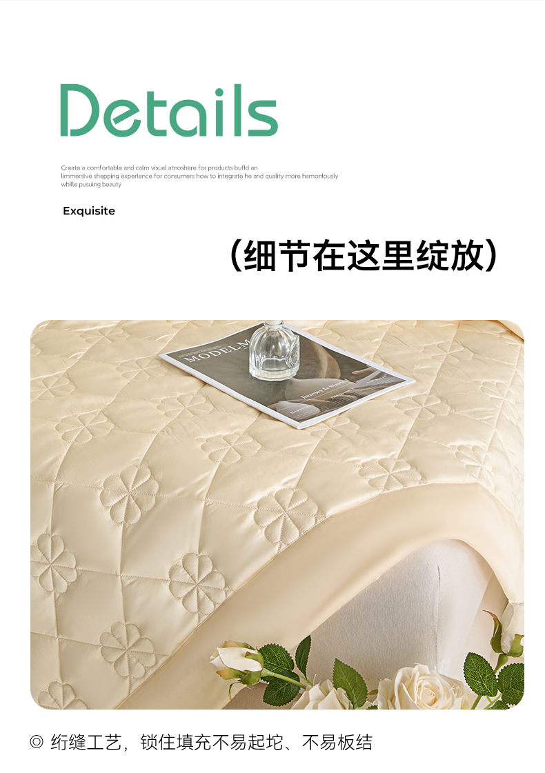 商品名称:DC 2026新款莱赛尔天丝夹棉花朵绗缝单品床盖 杏白