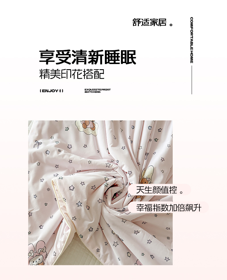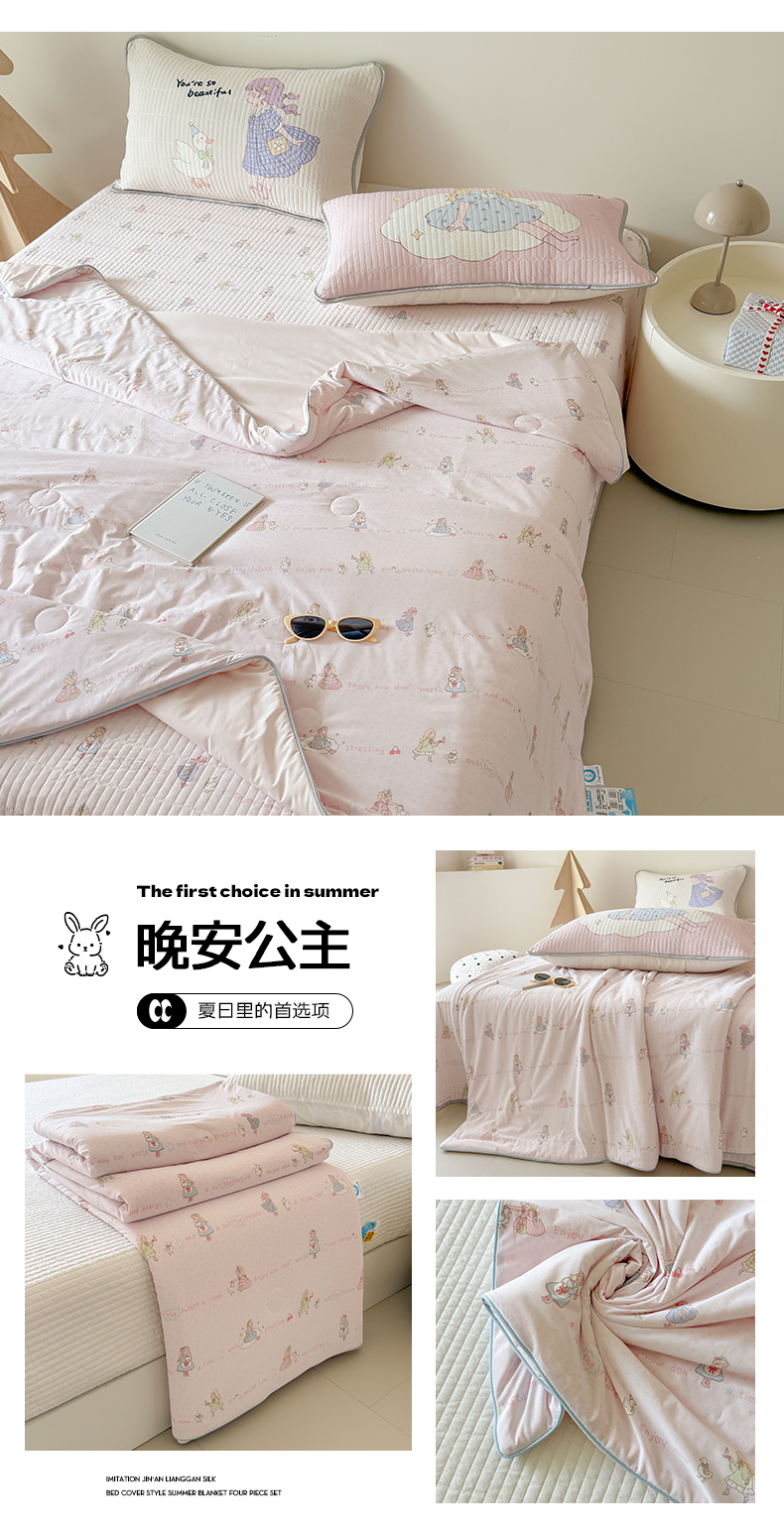 商品名称:吾欢心 2026夏季新款仿锦安凉感丝床盖款夏被四件套可可机洗凉感值大于0.2 甜梦兔