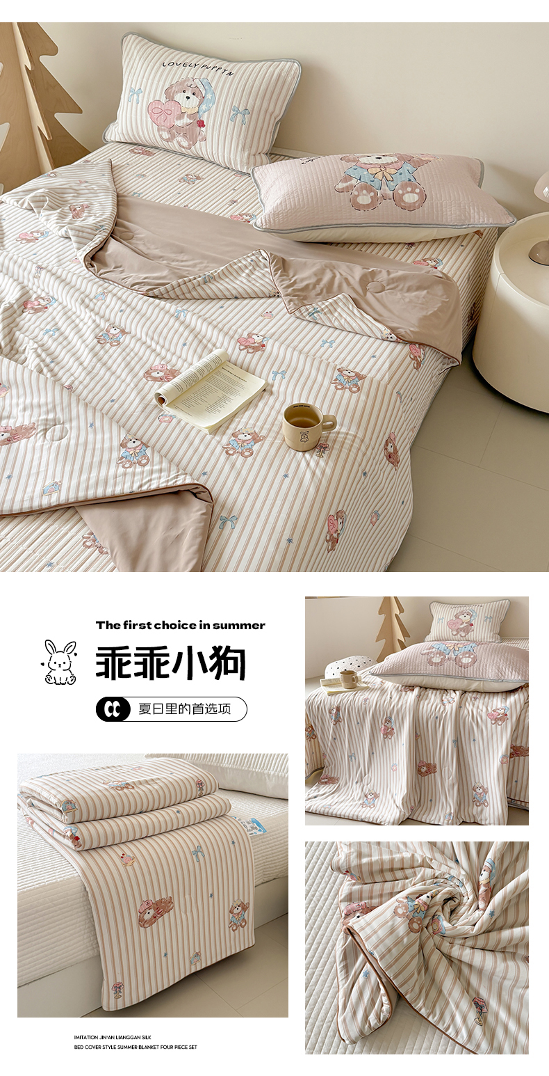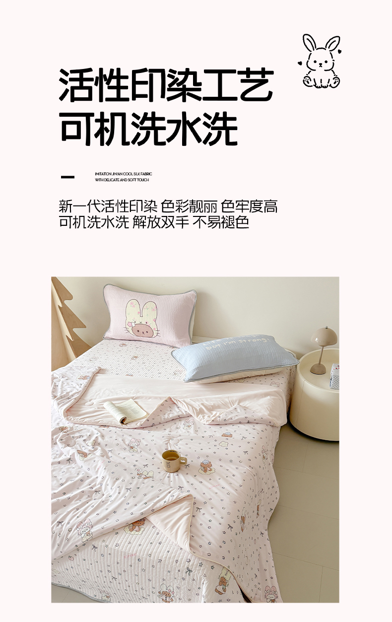 吾欢心 2026夏季新款仿锦安凉感丝床盖款夏被四件套可可机洗凉感值大于0.2 星球宝贝