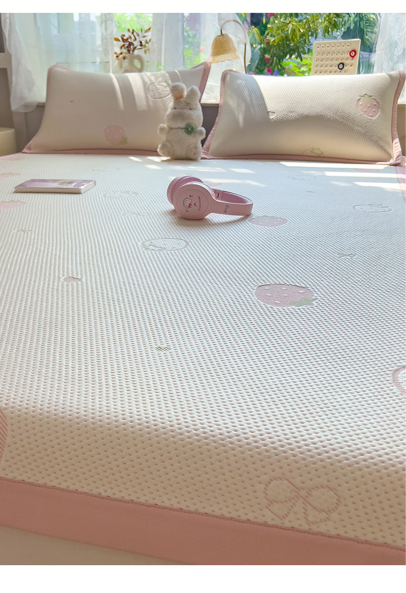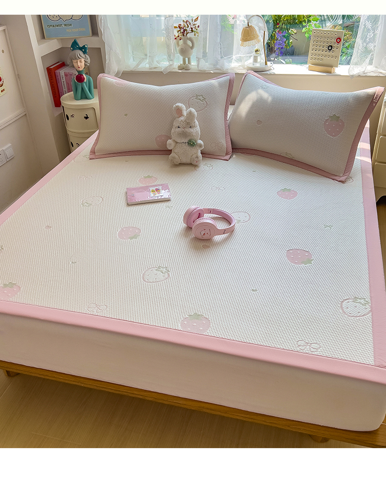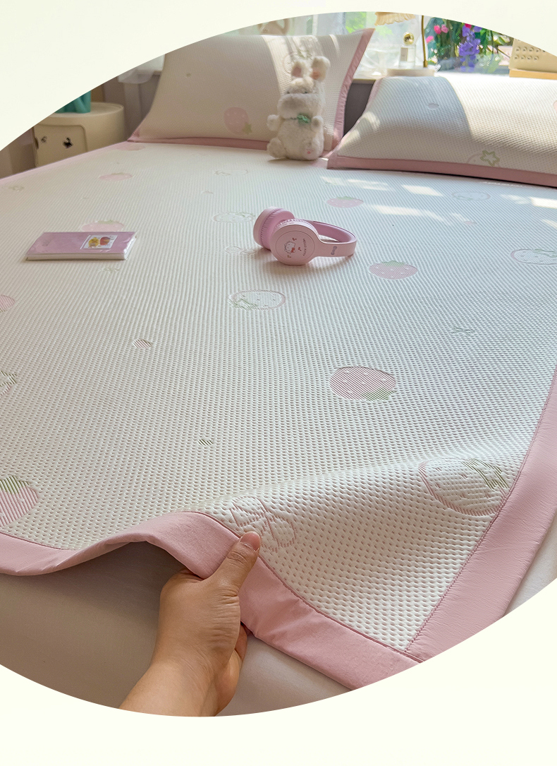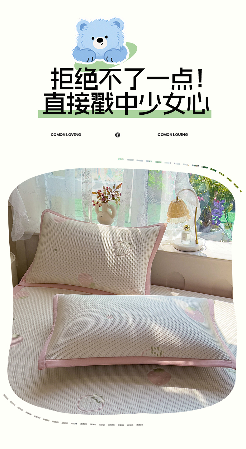 • 91家纺网 家纺一手货源 找家纺 雯豆家纺 2026新款PE中分子凉感凉席条席三件套加厚三明治款复合卡通提花凉席 PE提花凉席-甜心草莓