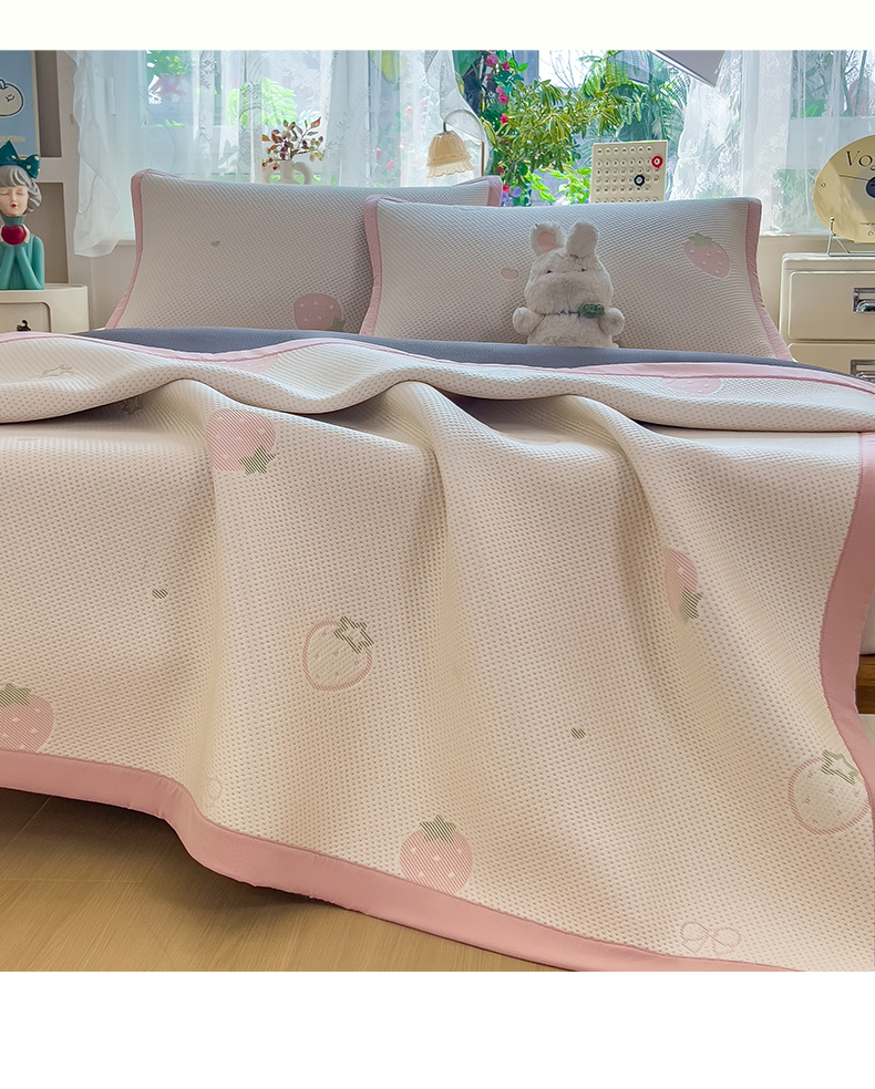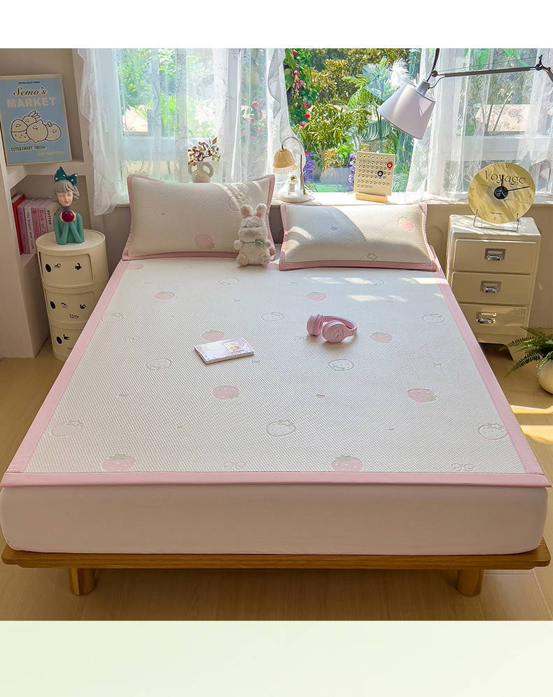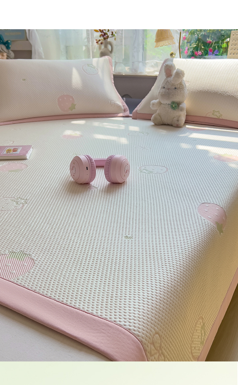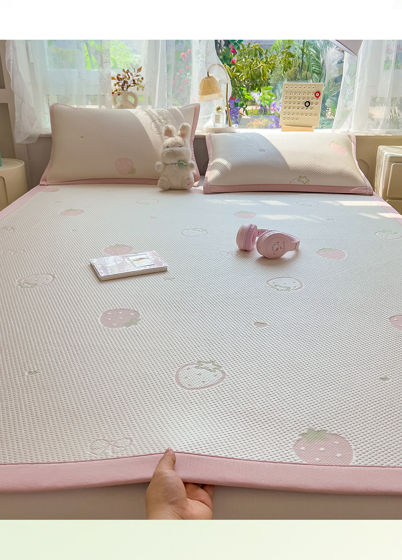 • 91家纺网 家纺一手货源 找家纺 雯豆家纺 2026新款PE中分子凉感凉席条席三件套加厚三明治款复合卡通提花凉席 PE提花凉席-甜心草莓
