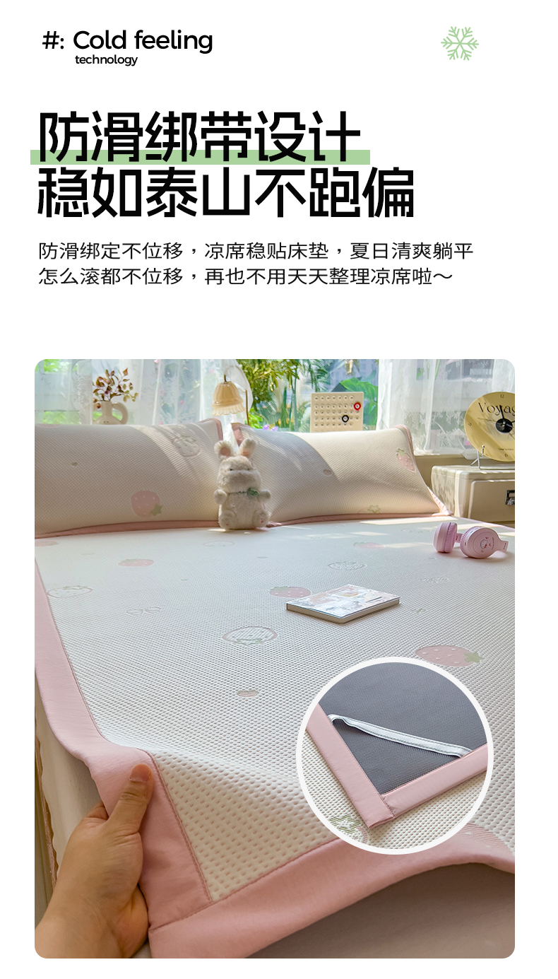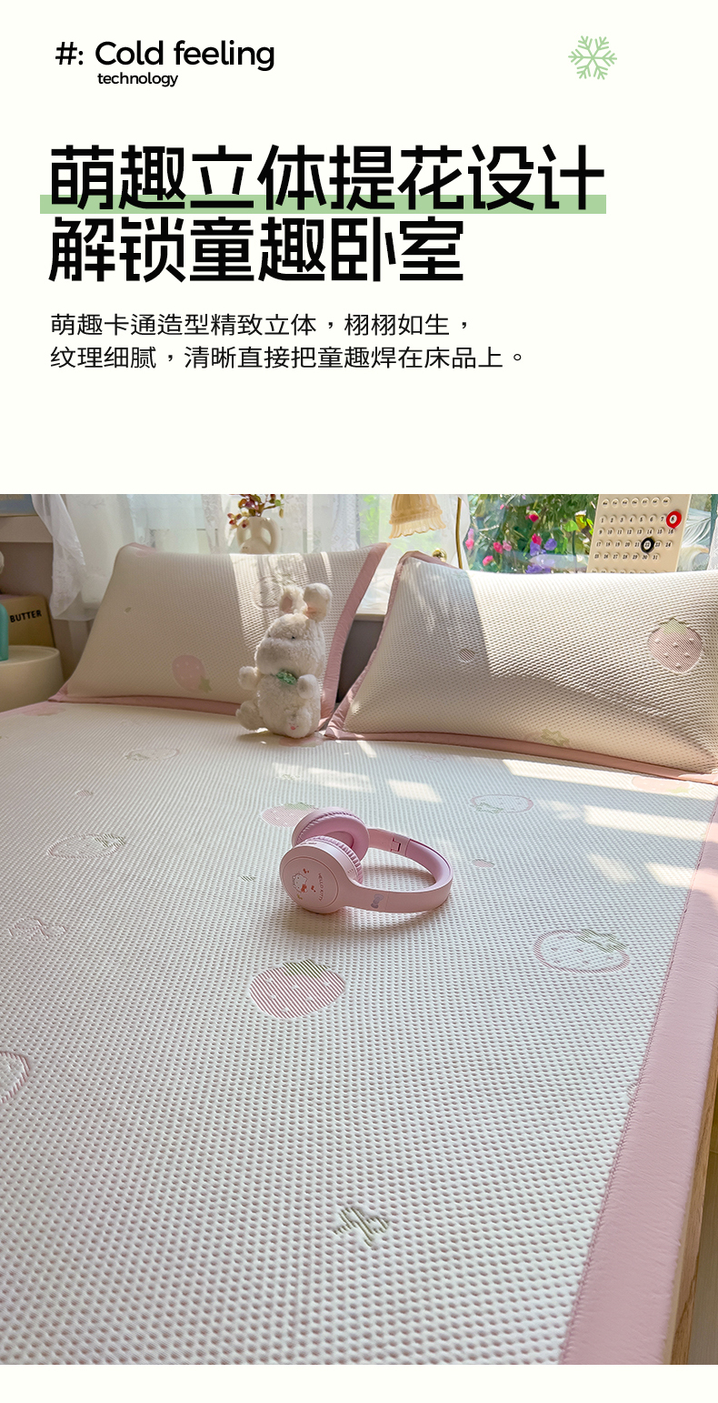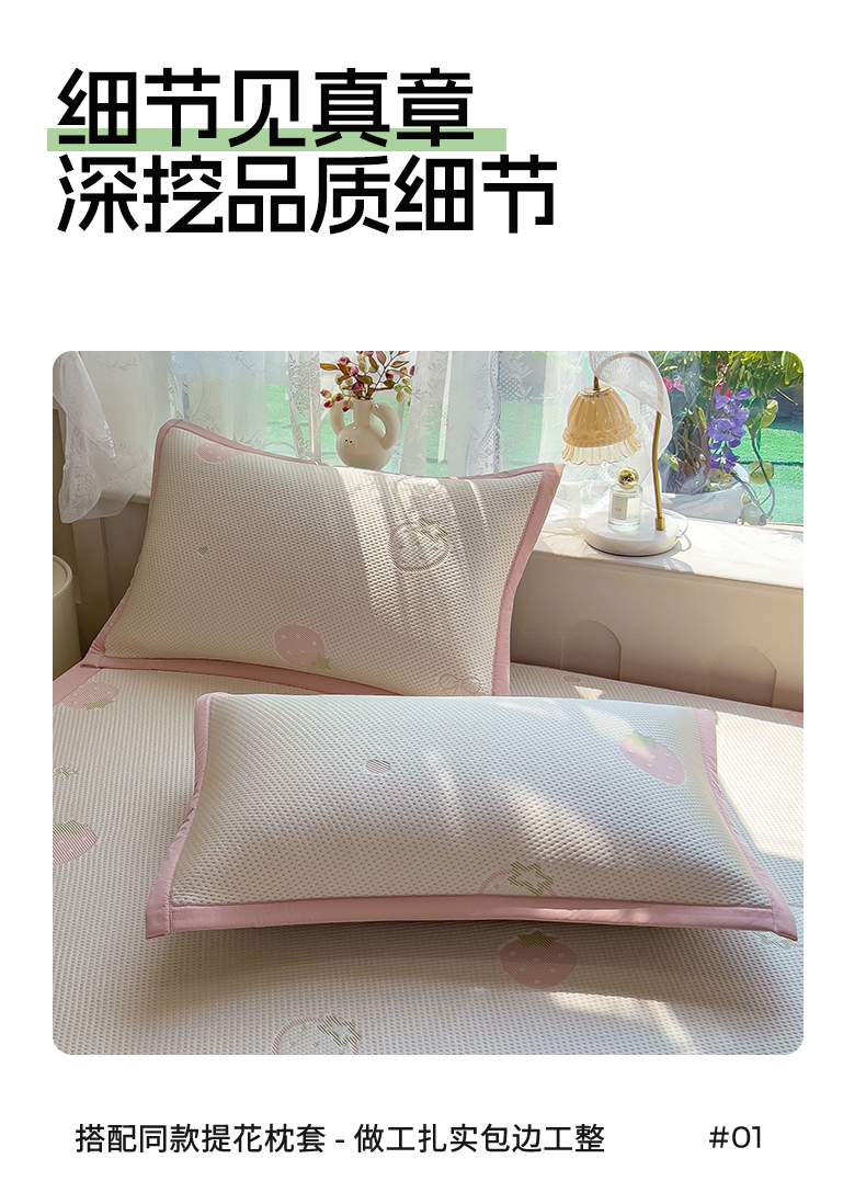 当前位置: 91家纺网 > 商品网购 > 床上用品 > 凉席 > 雯豆家纺 2026新款PE中分子凉感凉席条席三件套加厚三明治款复合卡通提花凉席 PE提花凉席-甜心草莓