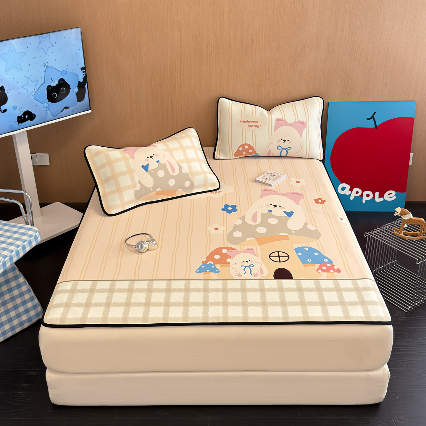 • 91家纺网 家纺一手货源 找家纺 懒猫家纺 2026新款大版卡通云感果冻床席床笠凉席 蘑菇屋-床席款
