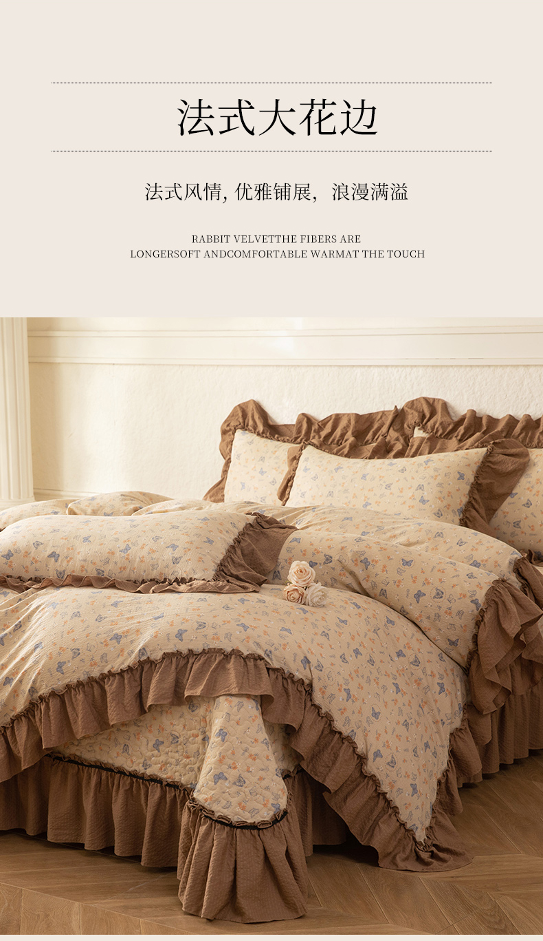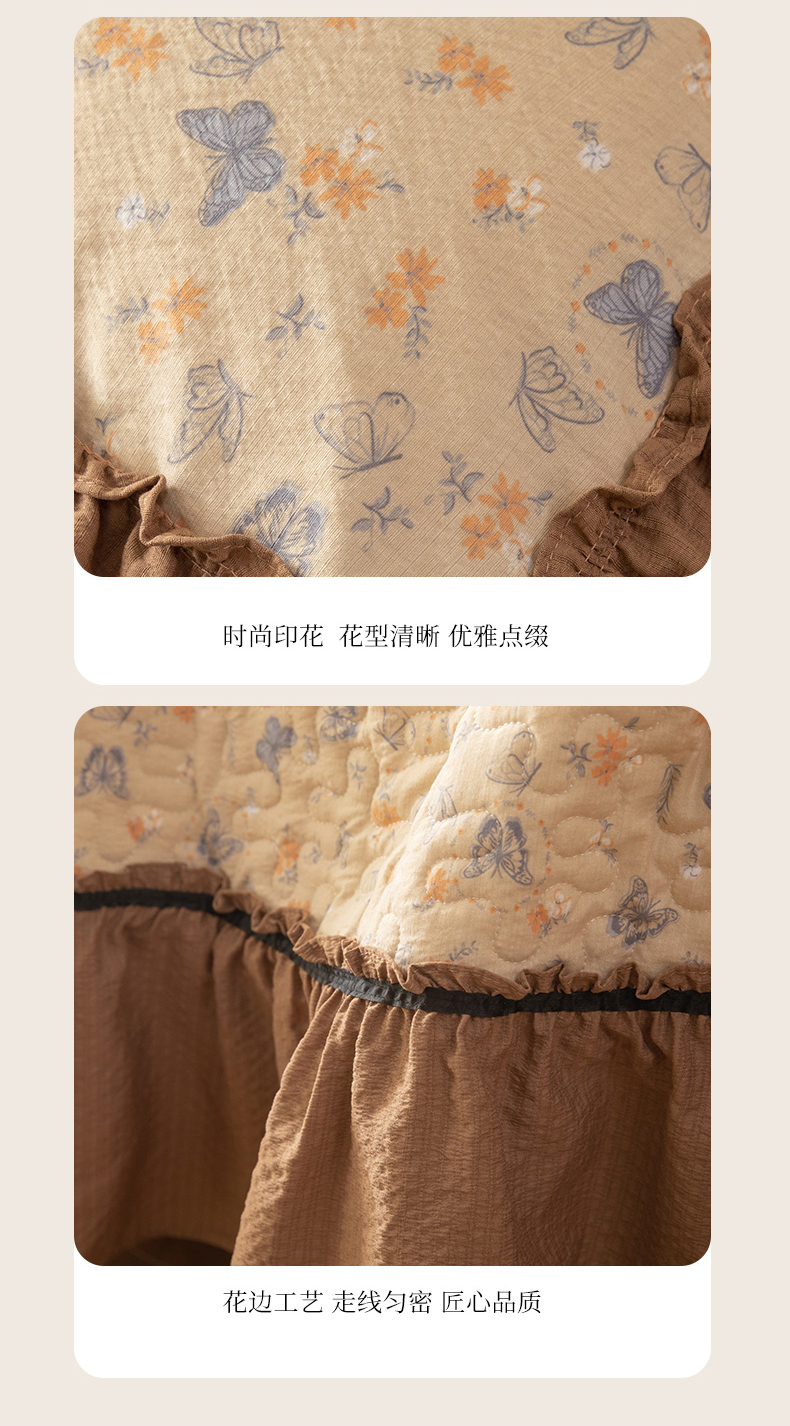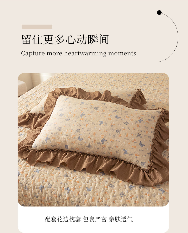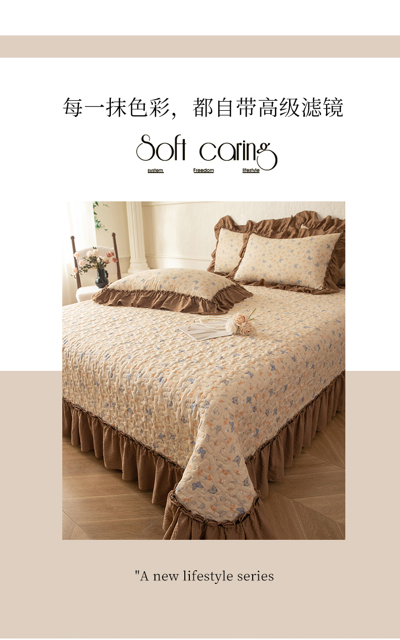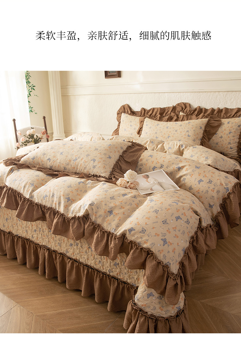 (总)贝凯瑞 2026新款双层纱木棉水洗棉法式复古花边床盖单件三件四件套-焦糖系列,焦糖蝴蝶结,焦糖花漾,焦糖蓝蝶,焦糖熊,焦糖樱桃,摩卡秘境