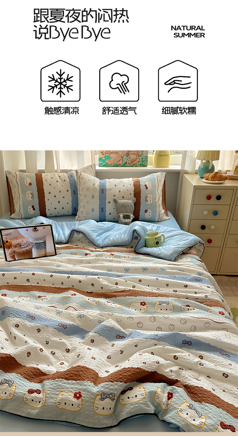 (总)贝扬思家纺 2025新款三丽鸥简约条纹夏被夏凉被空调被套件系列,奶油条kt粉粉,奶油条kt粉黄,奶油条kt黄黄,奶油条kt蓝蓝,奶油条kt紫紫