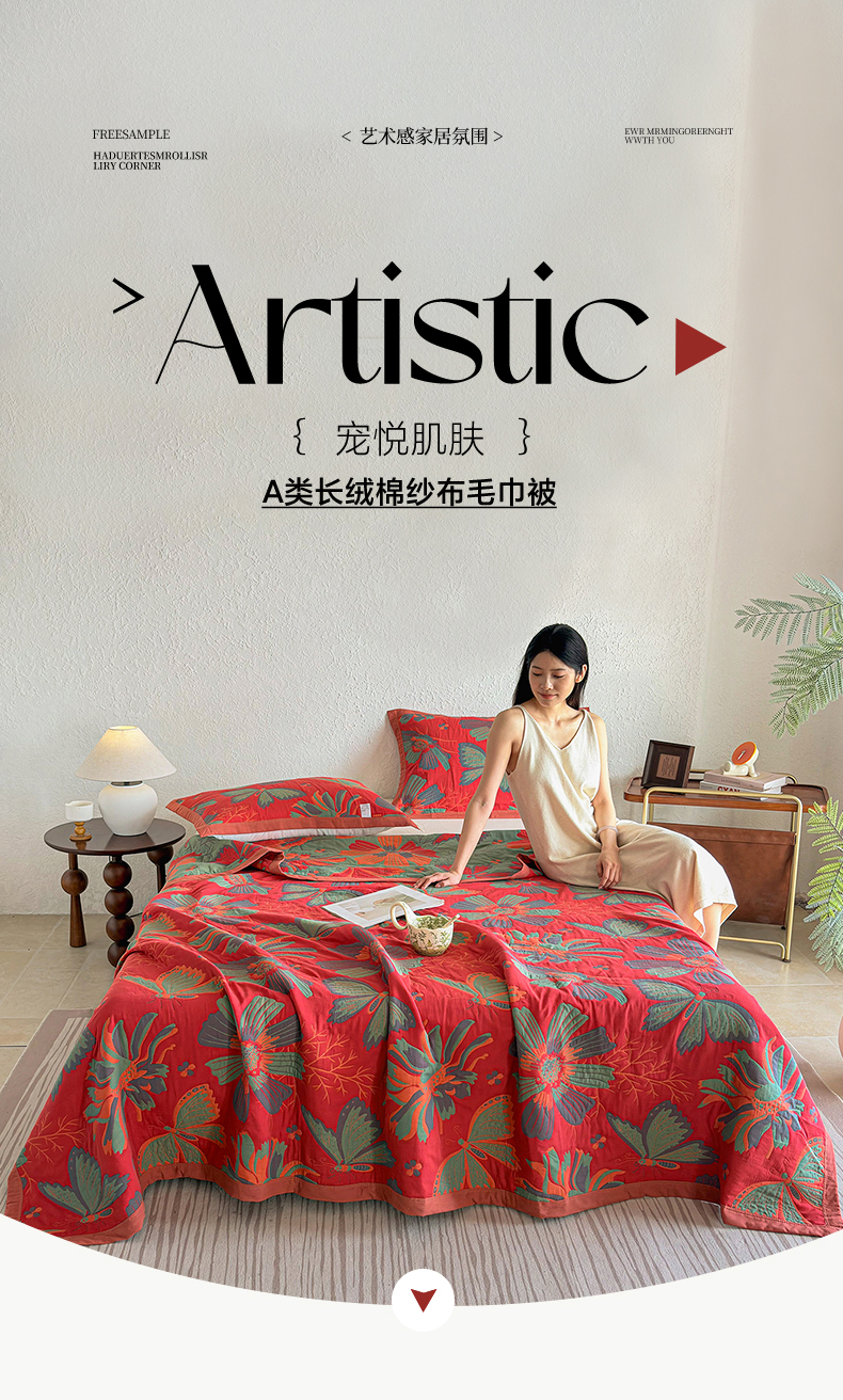 当前位置: 91家纺网 > 商品网购 > 被子 > 夏被 > 棠薇家纺 2026新款纱布盖毯长绒棉纱布毛巾被夏被单双人棉纱盖毯毛巾毯夏季夏凉被空调被毯子可铺可盖床盖 花样蝶舞红