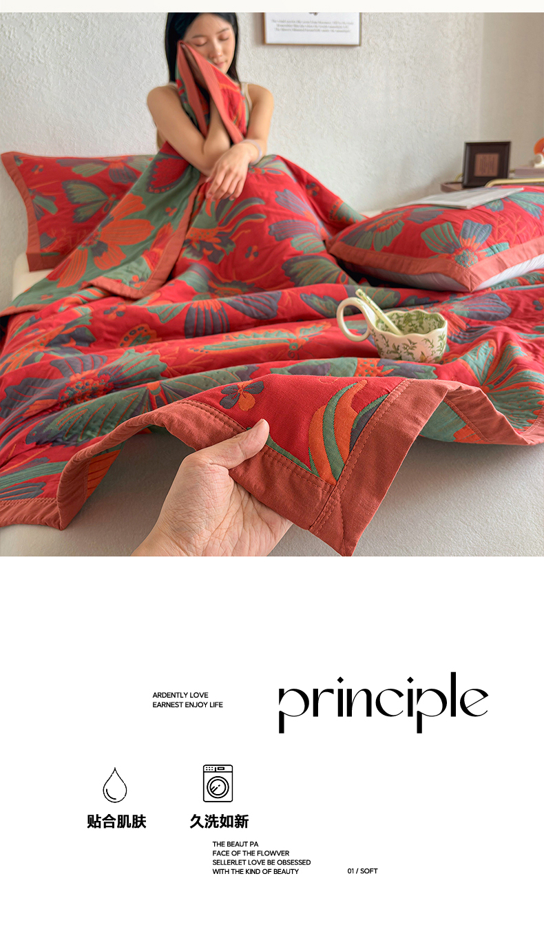 • 91家纺网 家纺一手货源 找家纺 (总)棠薇家纺 2026新款纱布盖毯长绒棉纱布毛巾被夏被单双人棉纱盖毯毛巾毯夏季夏凉被空调被毯子可铺可盖床盖,喜上枝头,花样蝶舞紫,花间漫步,花样蝶舞红,凌香花语,热带花园,忘忧草,典雅之风,花海,花林秘境,花团锦簇,可可花园,琉璃时光,龙凤呈祥,罗曼蒂克,年华粉,年华红,蒲公英,轻奢,盛世繁华,时光笔墨,柿柿如意,温婉花境,夏日森林,长城格