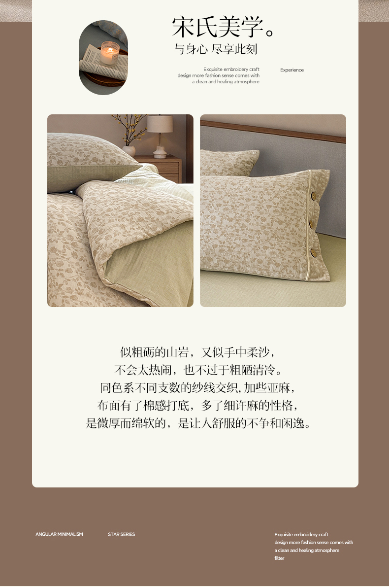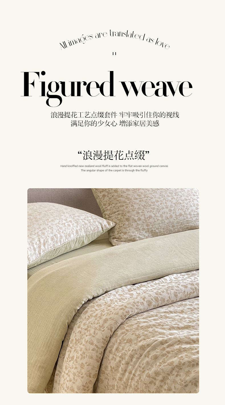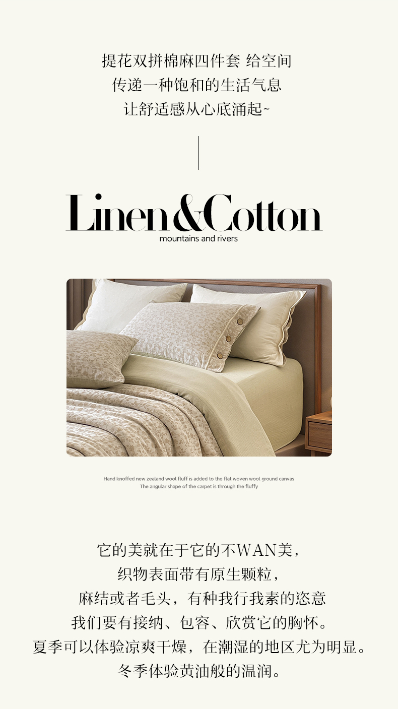 商品名称:树下 2026新款A类色织提花纽扣款棉麻四件套 曼眉