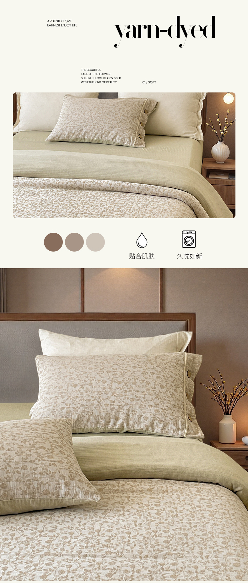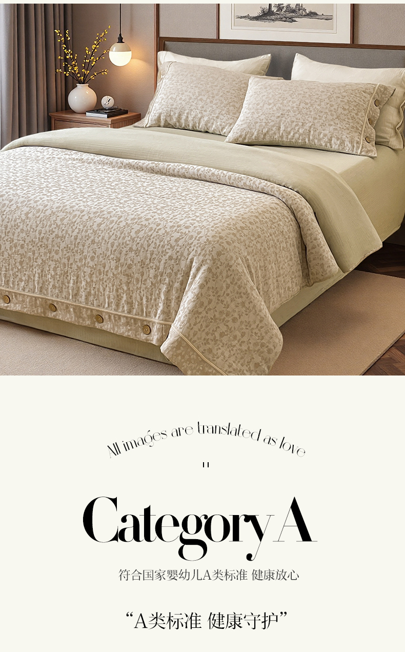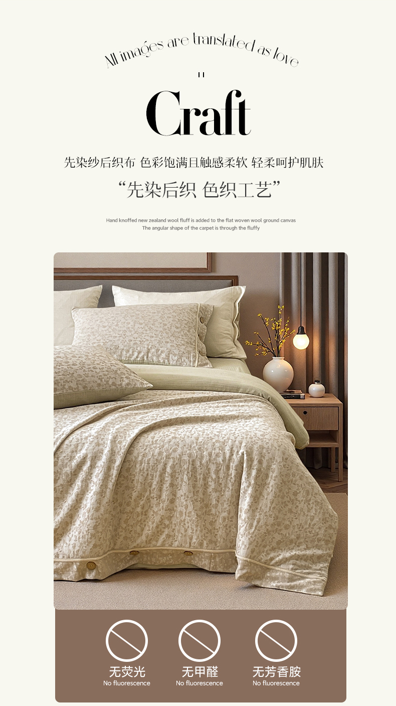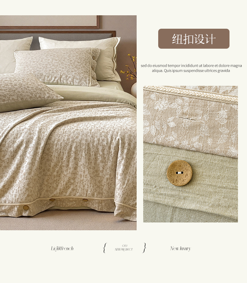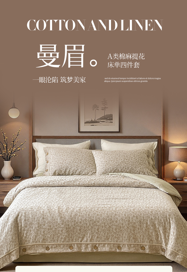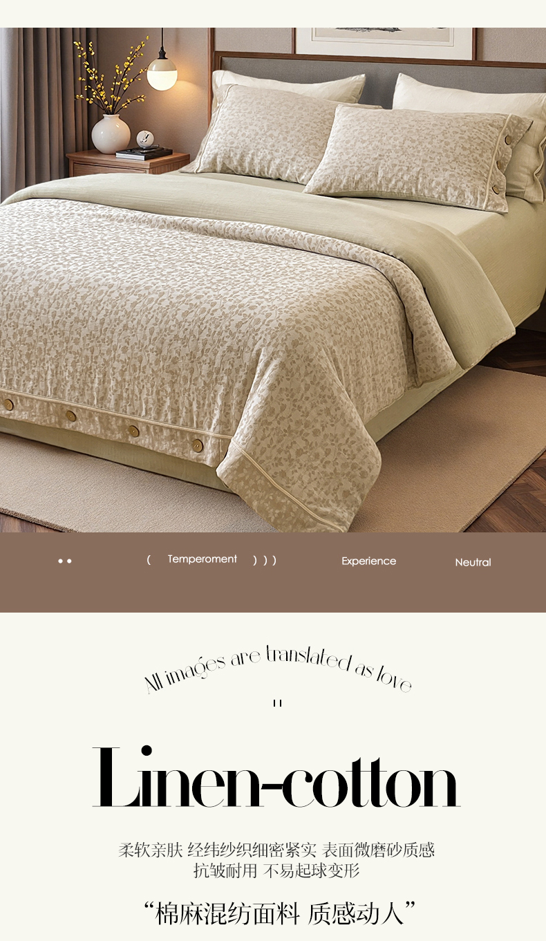 (总)树下 2026新款A类色织提花纽扣款棉麻四件套,曼眉,笙花