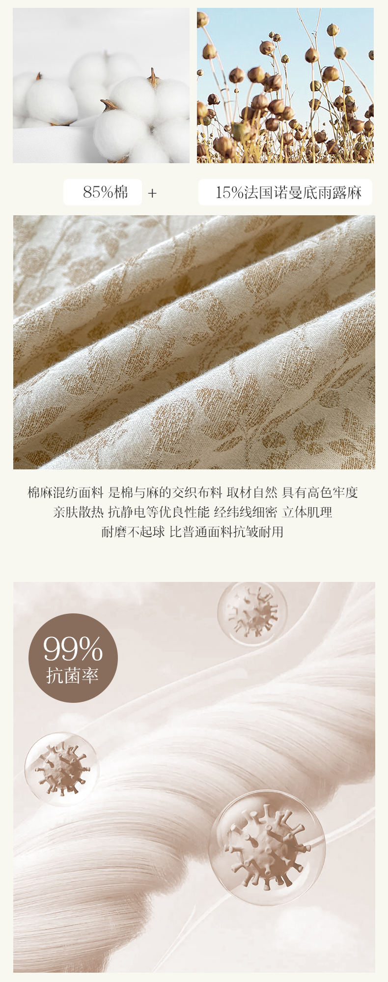 被面材质: 棉麻:棉+亚麻(混纺)