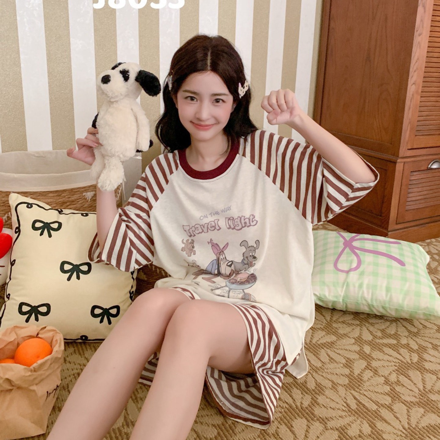 (总)妍景家居生活馆 2026新款竖条小奶狗家居服,竖条小奶狗