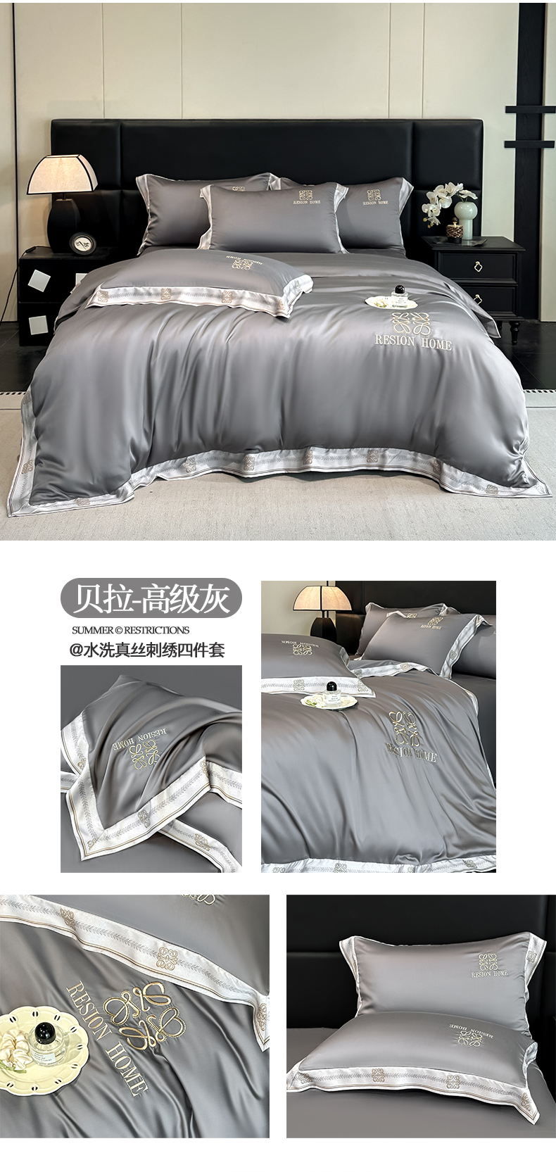 当前位置: 91家纺网 > 商品网购 > 床品套件 > 四件套 > 其它四件套 > 露梦家纺 2026新款A类水洗真丝轻奢刺绣拼接宽边四件套--贝拉系列 贝拉-木槿紫