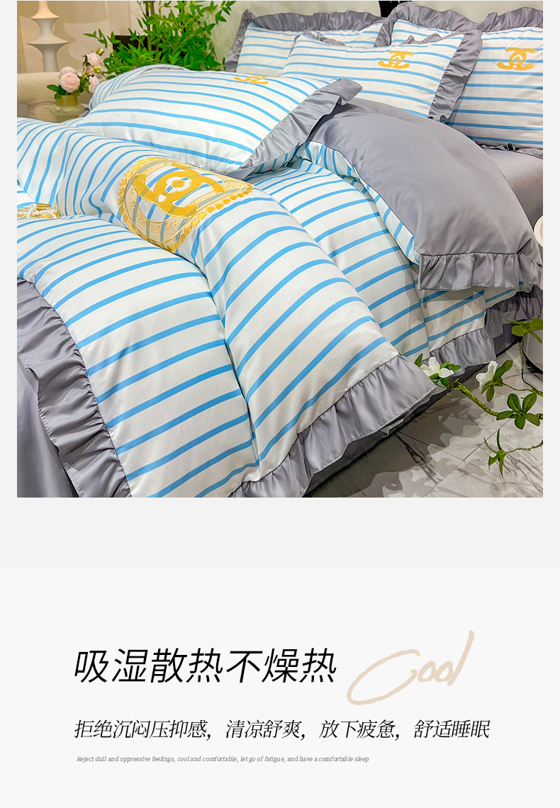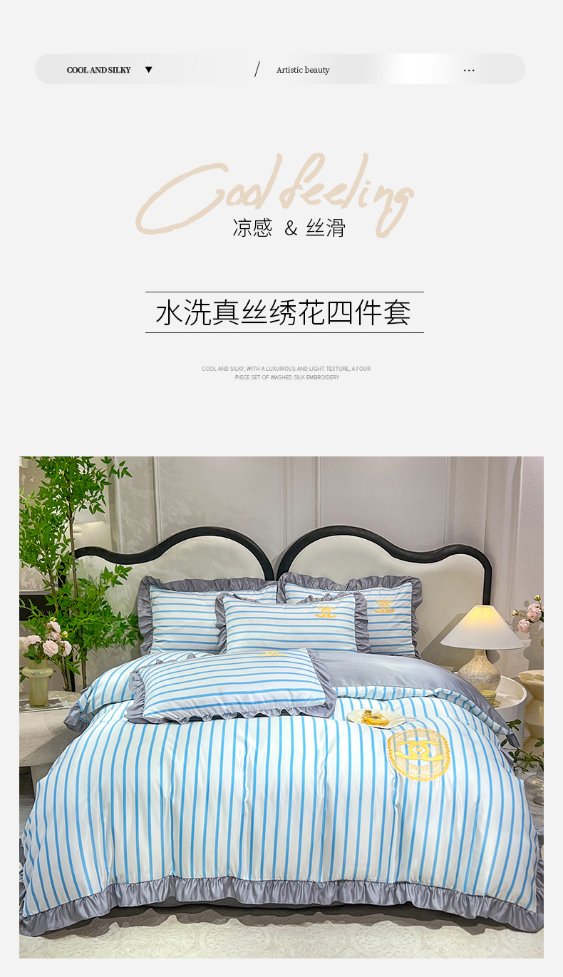 当前位置: 91家纺网 > 商品网购 > 床品套件 > 四件套 > 其它四件套 > 经年 2026新款水洗真丝韩版四件套 浅夏-蓝灰