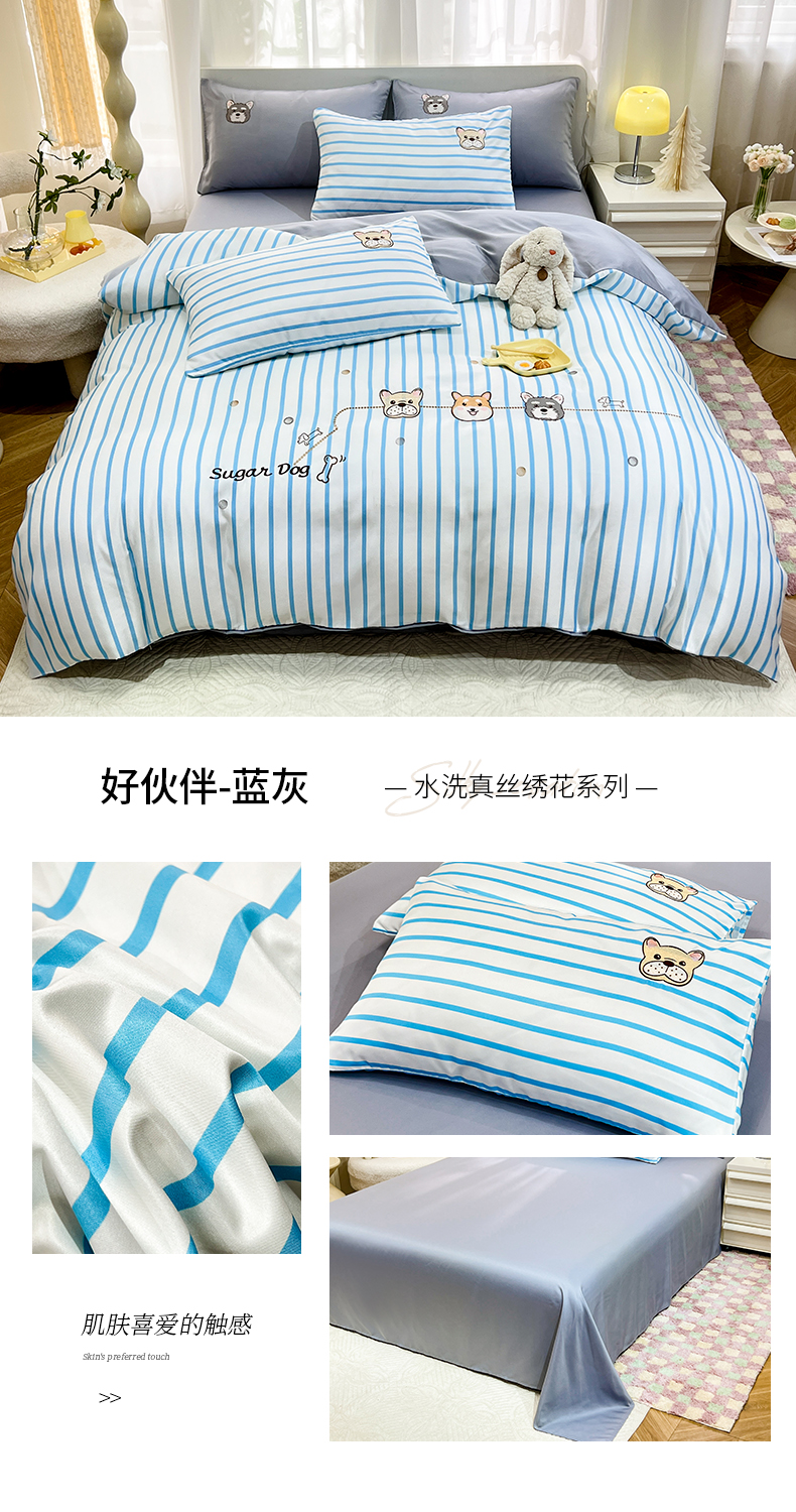 当前位置: 91家纺网 > 商品网购 > 床品套件 > 四件套 > 其它四件套 > 经年 2026新款水洗真丝四件套-好伙伴 好伙伴-蓝灰