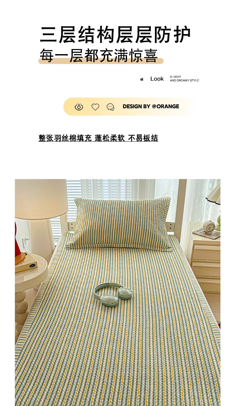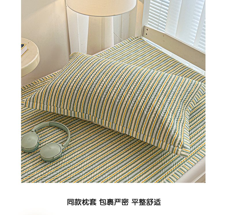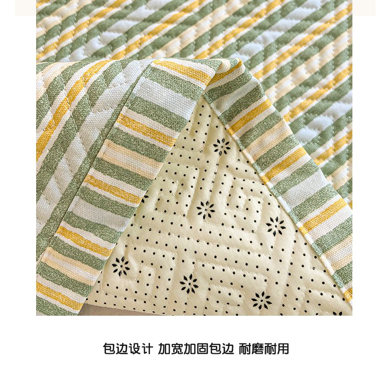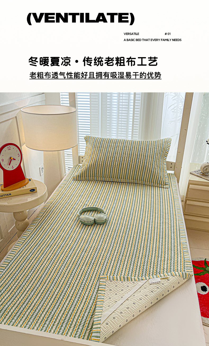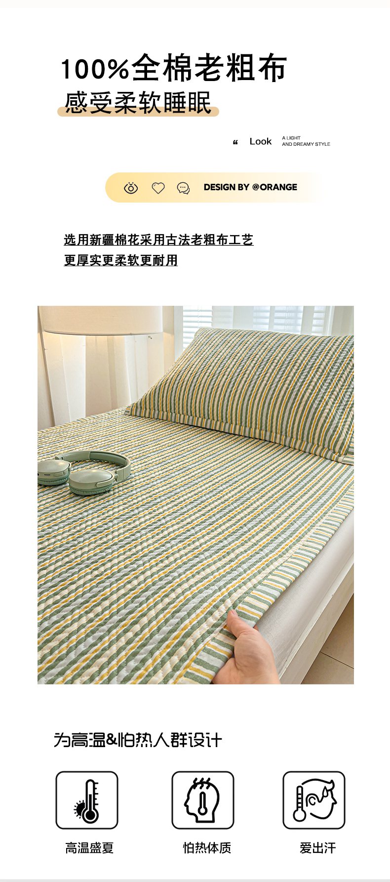 忆生活家纺 2026新款学生床全棉老粗布软凉席夹棉床盖 条纹绿